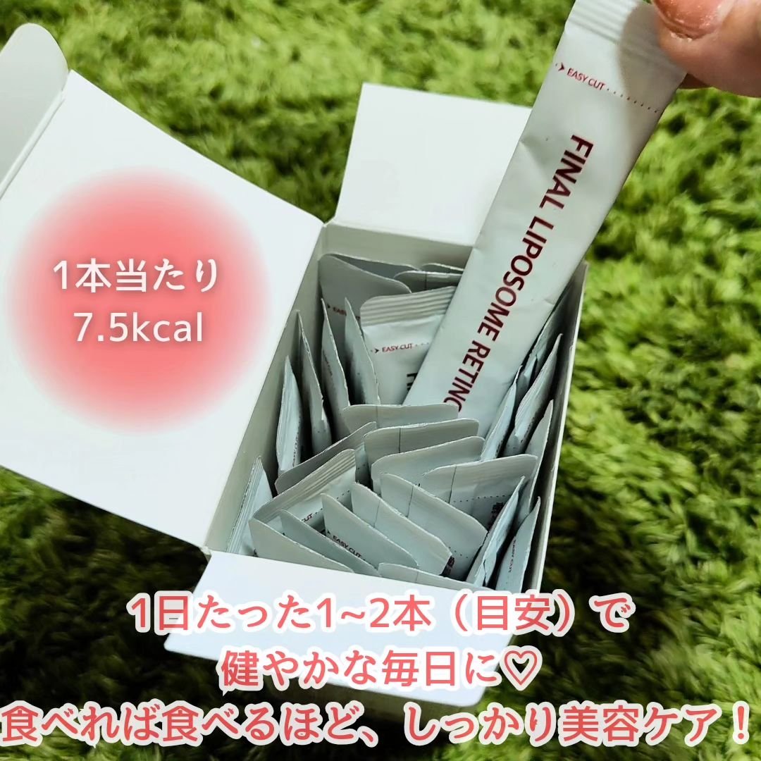 ビタミンA(レチノール)とリポソームビタミンCが配合されたサプリ❤️ リポソーム化されたビタミンCは体への吸収率がよく、効率的に栄養補給できちゃいます✨ レモン味なのですが砂糖がゼロなのにほんのり甘いので飲みやすい🍋 水無しで飲める&個包装なので出先でも飲める🙆♀️ レチノールは肌質を選ぶけど、飲むタイプは誰でも飲めるので全身プルプルになりたい方におすすめです😍