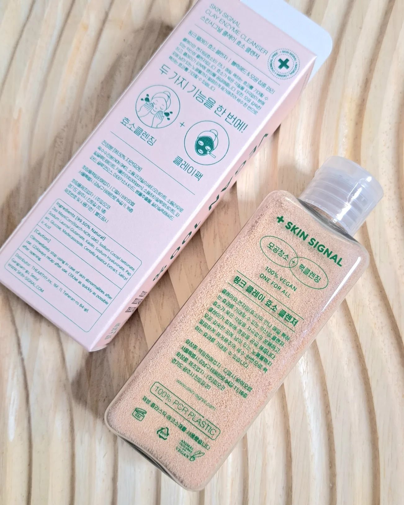 クレイが配合されていてお肌の汚れを吸着しながらすっきりオフしてくれます。 ピンクのクレンザーにはBHA(サリチル酸)が配合されていて毛穴の汚れやブラックヘッドのケアにぴったり。 水だけに溶かすと、酵素とクレイ成分でパック使いもできるので1本あると便利スキンケアでした!