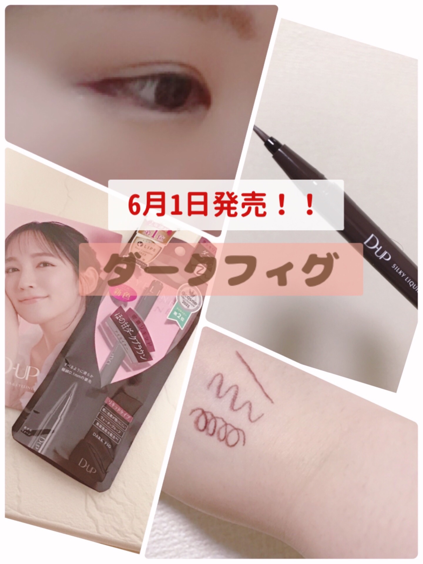 D-UPのアイライナーは、なめらかな描き心地で細い線も描きやすい!! 汗や涙にも強く、落ちにくいです。 カラー展開豊富で、オシャレなカラーが多い♡ ダークフィグは、赤みのある焦げ茶っぽいカラー。 ブラックに比べで肌馴染みがよく、程よい抜け感が出て、他には中々ない色味でお気に入り♡