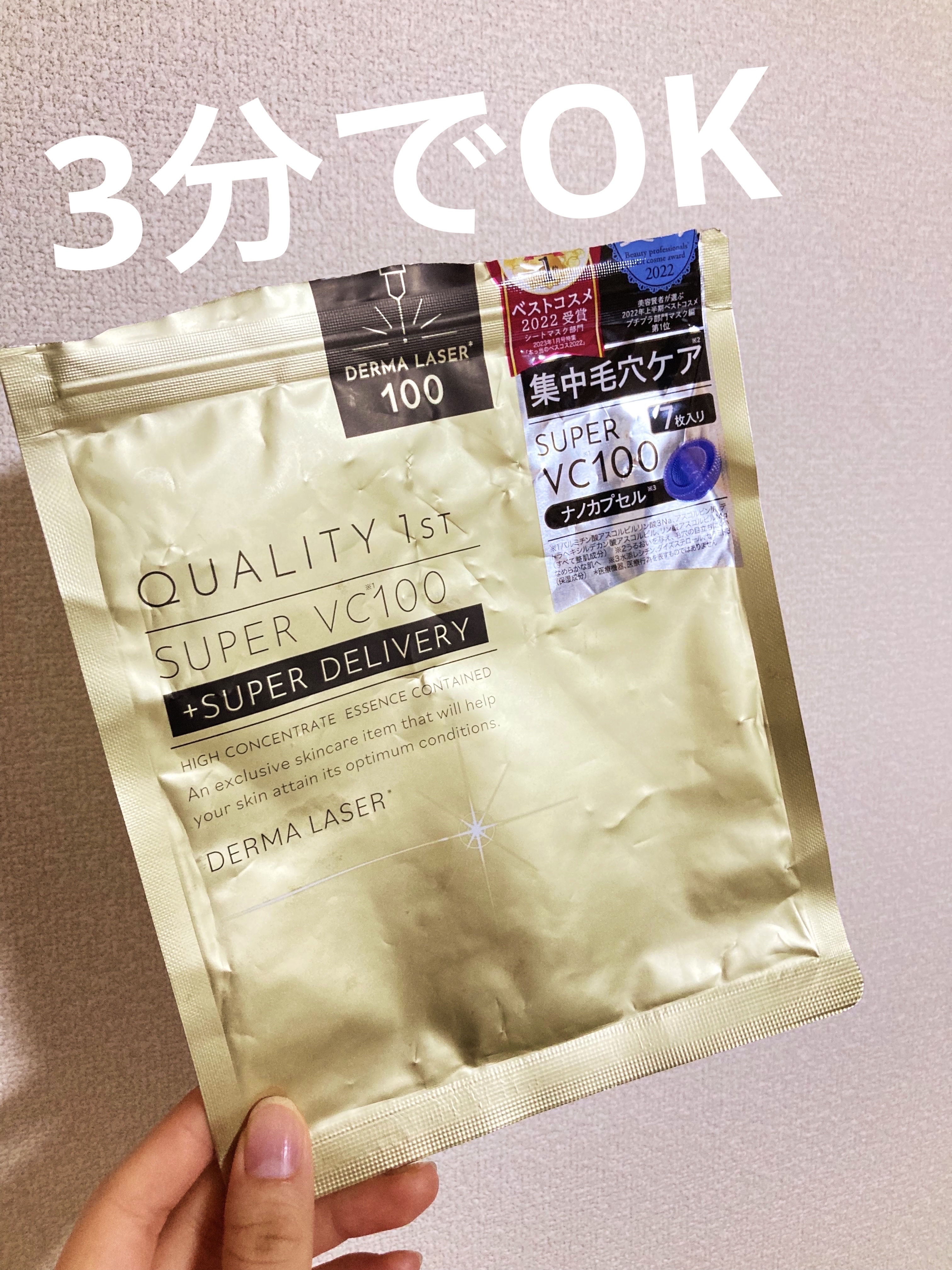 クオリティファーストダーマレーザースーパーVC100マスク正直レビューです((ˆ,,ˆ)”੭📝〜このシートマスクの特徴〜高密着成分浸透シート、濃厚成分圧縮デリバリー製法、浸透ビタミンCカプセル、これら3つのシステムにより速効性を実感できるシー...