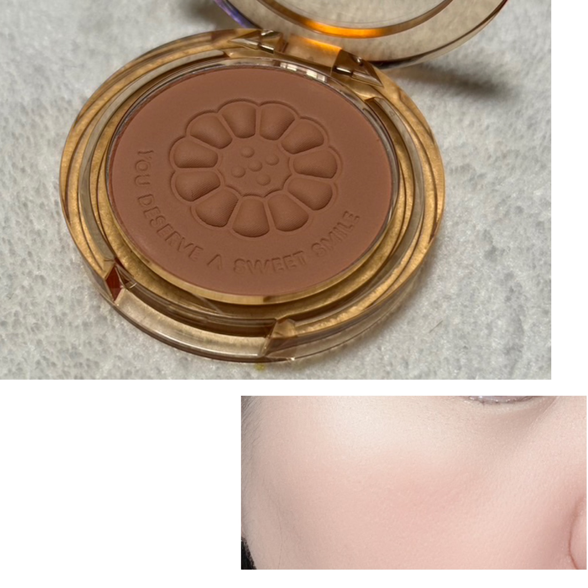 優しめな発色でスポンジでほんの少しずつつけたら赤ちゃんみたいなばぶみある頬に仕上がります👶🏻ྀི🍼 一気に濃く付きすぎることなくチーク初心者でも使いやすいと思います🫧 スポンジでぽんぽん付けると自然です🤍