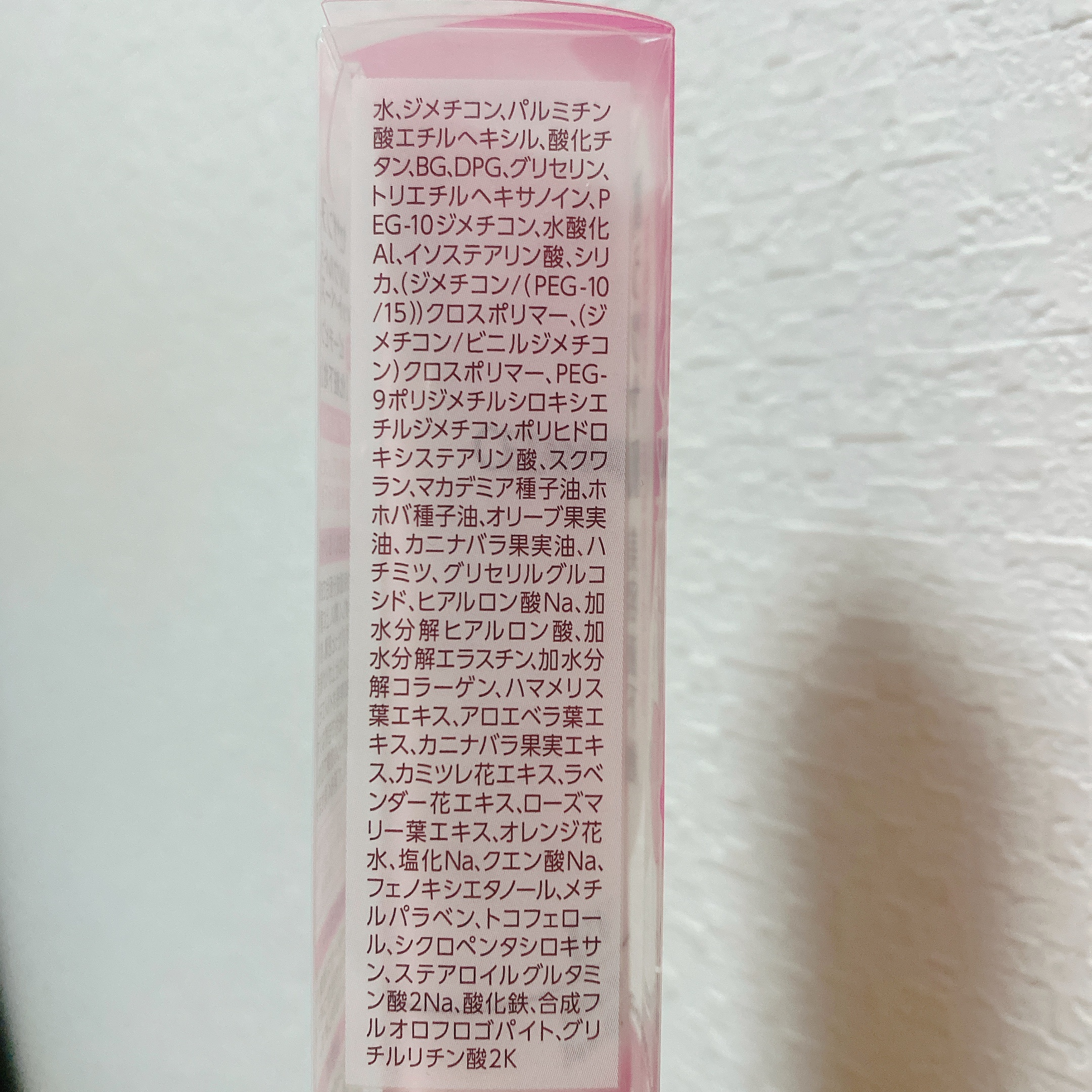 - <00 オレンジベージュ> 水、ジメチコン、パルミチン酸エチルヘキシル、酸化チタン、BG、DPG、グリセリン、トリエチルヘキサノイン、PEG-10ジメチコン、水酸化Al、イソステアリン酸、シリカ、(ジメチコン/(PEG-10/15))クロスポリマー、(ジメチコン/ビニルジメチコン)クロスポリマー、PEG-9ポリジメチルシロキシエチルジメチコン、ポリヒドロキシステアリン酸、スクワラン、マカデミア種子油、ホホバ種子油、オリーブ果実油、カニナバラ果実油、ハチミツ、グリセリルグルコシド、ヒアルロン酸Na、加水分解ヒアルロン酸、加水分解エラスチン、加水分解コラーゲン、ハマメリス葉エキス、アロエベラ葉エキス、カニナバラ果実エキス、カミツレ花エキス、ラベンダー花エキス、ローズマリー葉エキス、オレンジ花水、塩化Na、クエン酸Na、フェノキシエタノール、メチルパラベン、トコフェロール、シクロペンタシロキサン、ステアロイルグルタミン酸2Na、酸化鉄、合成フルオロフロゴパイト、グリチルリチン酸2K <01 ライトブルー> 水、ジメチコン、パルミチン酸エチルヘキシル、酸化チタン、BG、DPG、グリセリン、トリエチルヘキサノイン、PEG-10ジメチコン、水酸化Al、イソステアリン酸、シリカ、(ジメチコン/(PEG-10/15))クロスポリマー、(ジメチコン/ビニルジメチコン)クロスポリマー、PEG-9ポリジメチルシロキシエチルジメチコン、ポリヒドロキシステアリン酸、スクワラン、マカデミア種子油、ホホバ種子油、オリーブ果実油、カニナバラ果実油、ハチミツ、グリセリルグルコシド、ヒアルロン酸Na、加水分解ヒアルロン酸、加水分解エラスチン、加水分解コラーゲン、ハマメリス葉エキス、アロエベラ葉エキス、カニナバラ果実エキス、カミツレ花エキス、ラベンダー花エキス、ローズマリー葉エキス、オレンジ花水、塩化Na、クエン酸Na、フェノキシエタノール、メチルパラベン、トコフェロール、シクロペンタシロキサン、ステアロイルグルタミン酸2Na、合成フルオロフロゴパイト、コンジョウ、タルク、グリチルリチン酸2K <02 ピーチピンク> 水、ジメチコン、パルミチン酸エチルヘキシル、酸化チタン、BG、DPG、グリセリン、トリエチルヘキサノイン、PEG-10ジメチコン、水酸化Al、イソステアリン酸、シリカ、(ジメチコン/(PEG-10/15))クロスポリマー、(ジメチコン/ビニルジメチコン)クロスポリマー、PEG-9ポリジメチルシロキシエチルジメチコン、ポリヒドロキシステアリン酸、スクワラン、マカデミア種子油、ホホバ種子油、オリーブ果実油、カニナバラ果実油、ハチミツ、グリセリルグルコシド、ヒアルロン酸Na、加水分解ヒアルロン酸、加水分解エラスチン、加水分解コラーゲン、ハマメリス葉エキス、アロエベラ葉エキス、カニナバラ果実エキス、カミツレ花エキス、ラベンダー花エキス、ローズマリー葉エキス、オレンジ花水、塩化Na、クエン酸Na、フェノキシエタノール、メチルパラベン、トコフェロール、シクロペンタシロキサン、ステアロイルグルタミン酸2Na、酸化鉄、合成フルオロフロゴパイト、グリチルリチン酸2K