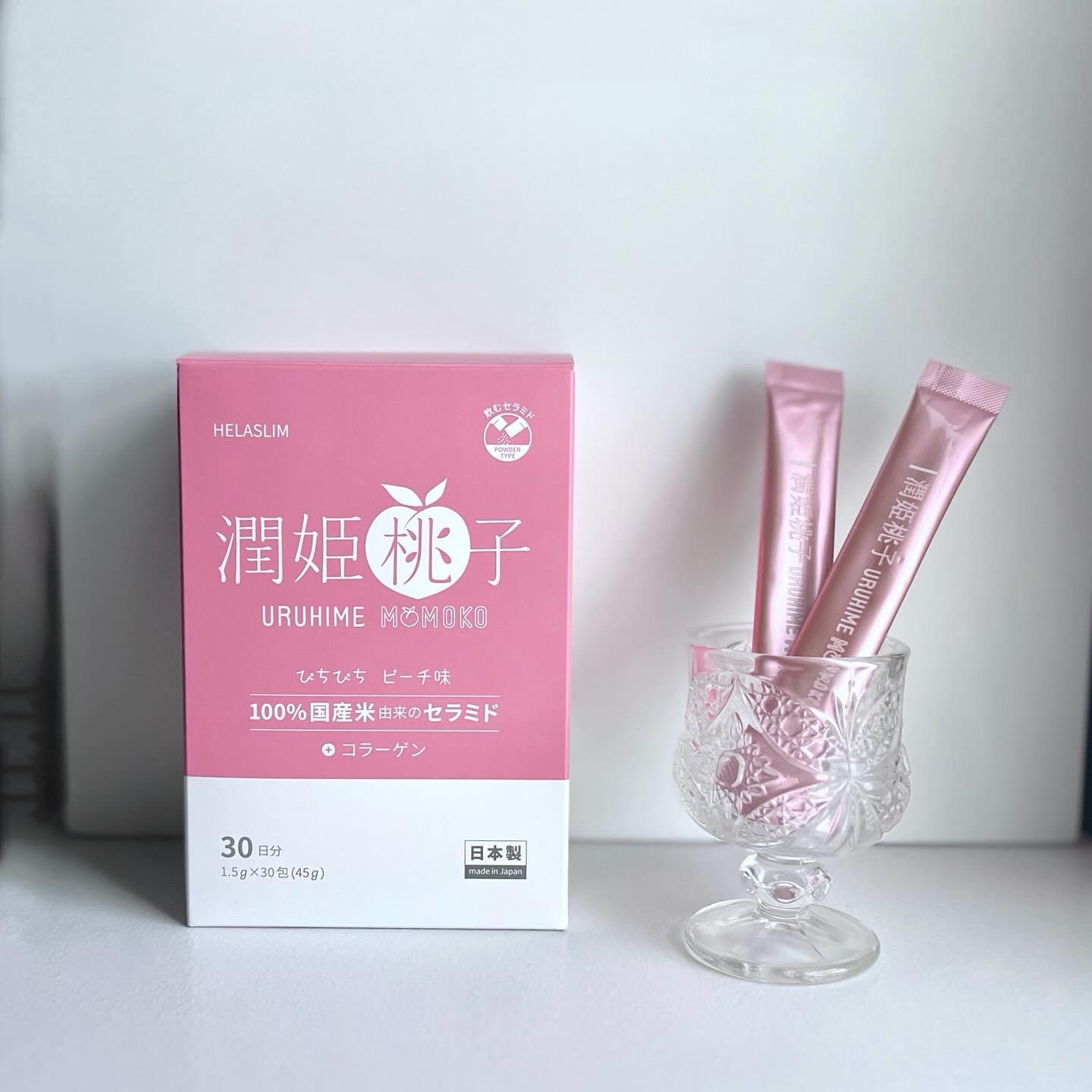 - 100%国産米由来のグルコシルセラミドを1.8㎎配合した、パウダータイプのセラミドサプリメント。 美容成分として、コラーゲン、ビタミンC、ビタミンB群を配合。口どけの良いサラッとしたスティック状のパウダータイプで時間や場所を気にせずいつでも気軽にセラミドケアができます。ほんのり甘いピーチ味で、ついお菓子感覚で食べたくなる美味しさです。