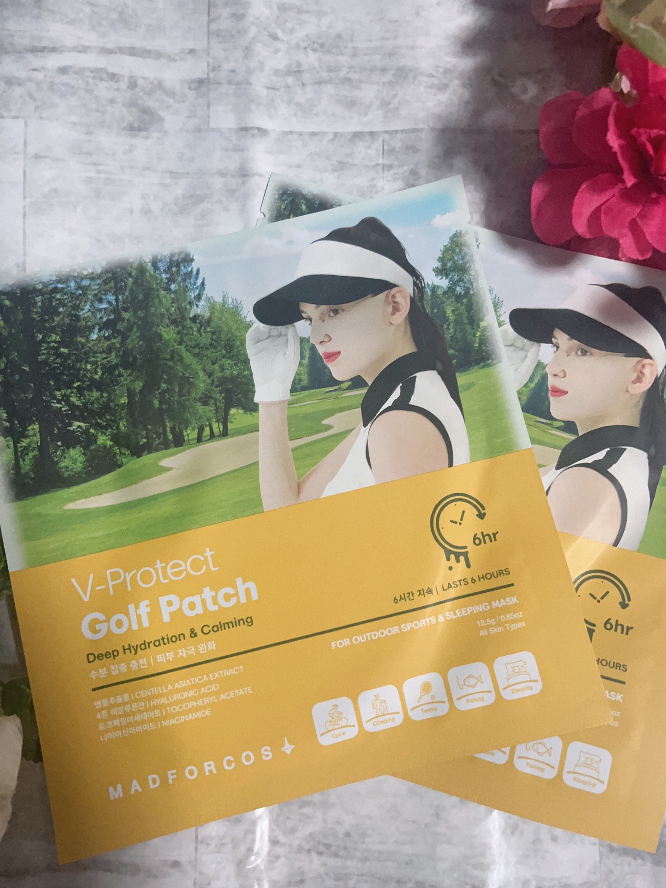 LIPSのプレキャンで当選していただきましたMADFORCOSV-プロテクトゴルフパッチ(Mサイズ)野外スポーツ用顔面パッチゴルフだけじゃなく野外で絶対焼きたくない人必見見た目にちょっとびっくりしたけどゲル内部美容成分で水分と美容成分も補給出...
