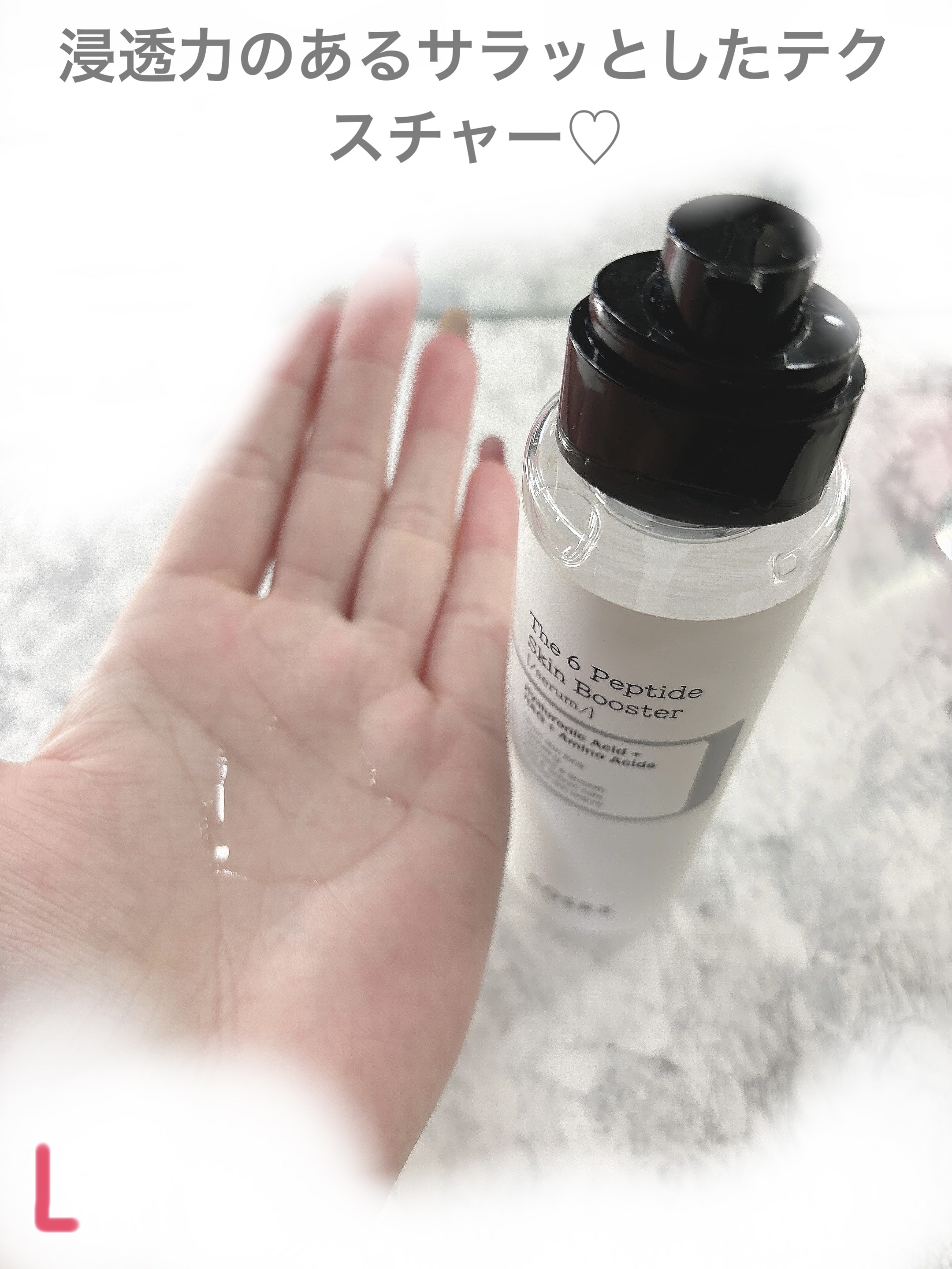6種類のペプチド効果でアンチエイジング✨ ・シワ ・鎮静 ・美白 ・毛穴 ・弾力 洗顔後、ファーストステップで使用するとその後に使う化粧品の浸透が凄くよくなります。 長期使用していると肌質も少し柔らかくなった感じがします シミに効果音なのに刺激がなく安心して使えます! サッパリしたテクスチャーで、RXザ・6ペプチドスキンブースターセラムと使用すると、より浸透して効果が高くなります!