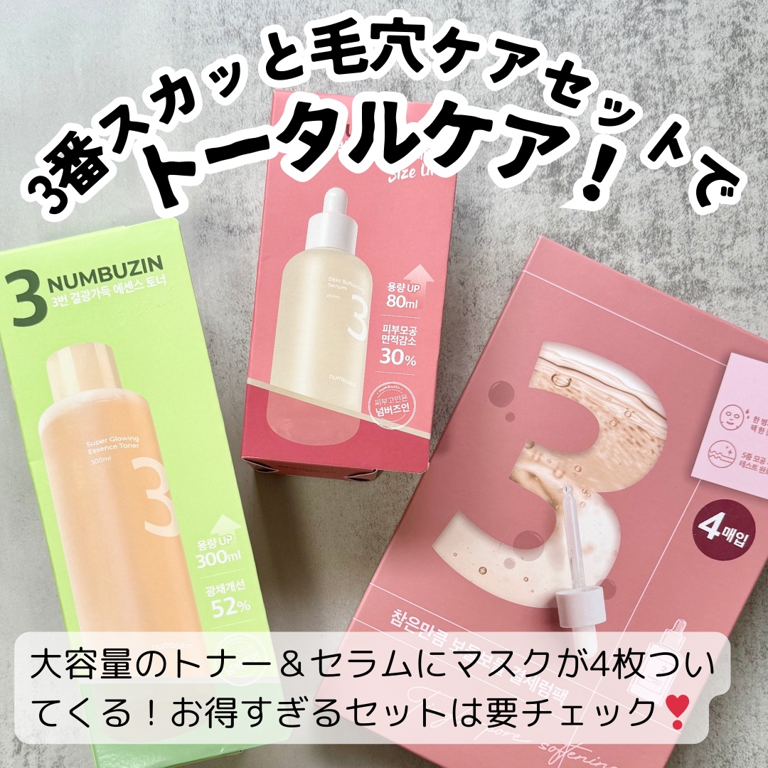 発酵成分たっぷりのトナーとセラムは肌をツヤっと滑らかに パックは本当に毛穴がパカっとしてたら耐えろ~って感じ 今回のセットは最大58%OFFでお得なのでぜひチェックしてみてね! ナンバーズインの新イメージモデルの起用も決定したとのこと