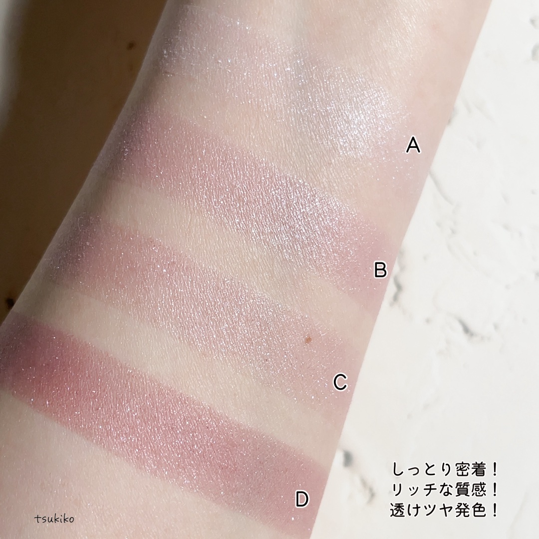 - しっとり密着!リッチな質感! 透けツヤ4色アイシャドウ シルクのようなツヤ感とスフレのようななめらかさ。 繊細なパールが配合されたやわらかなしっとりパウダーで、上品な目元に仕上がります。 ※2023年8月〜パッケージ順次リニューアル。