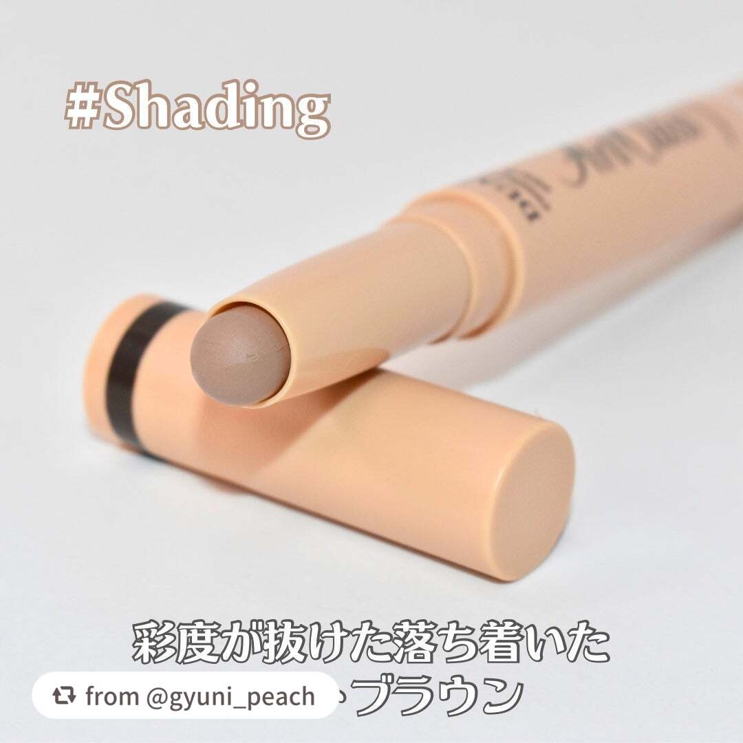 - 鼻筋シュッと、簡単立体メイク シェーディングとハイライトが1本になった便利なスティックタイプ。小顔効果や立体感を演出するほか鼻筋、涙袋、唇などにも使えるマルチスティック! クリーミーな質感でムラなく馴染み初心者でも失敗しにくい。
