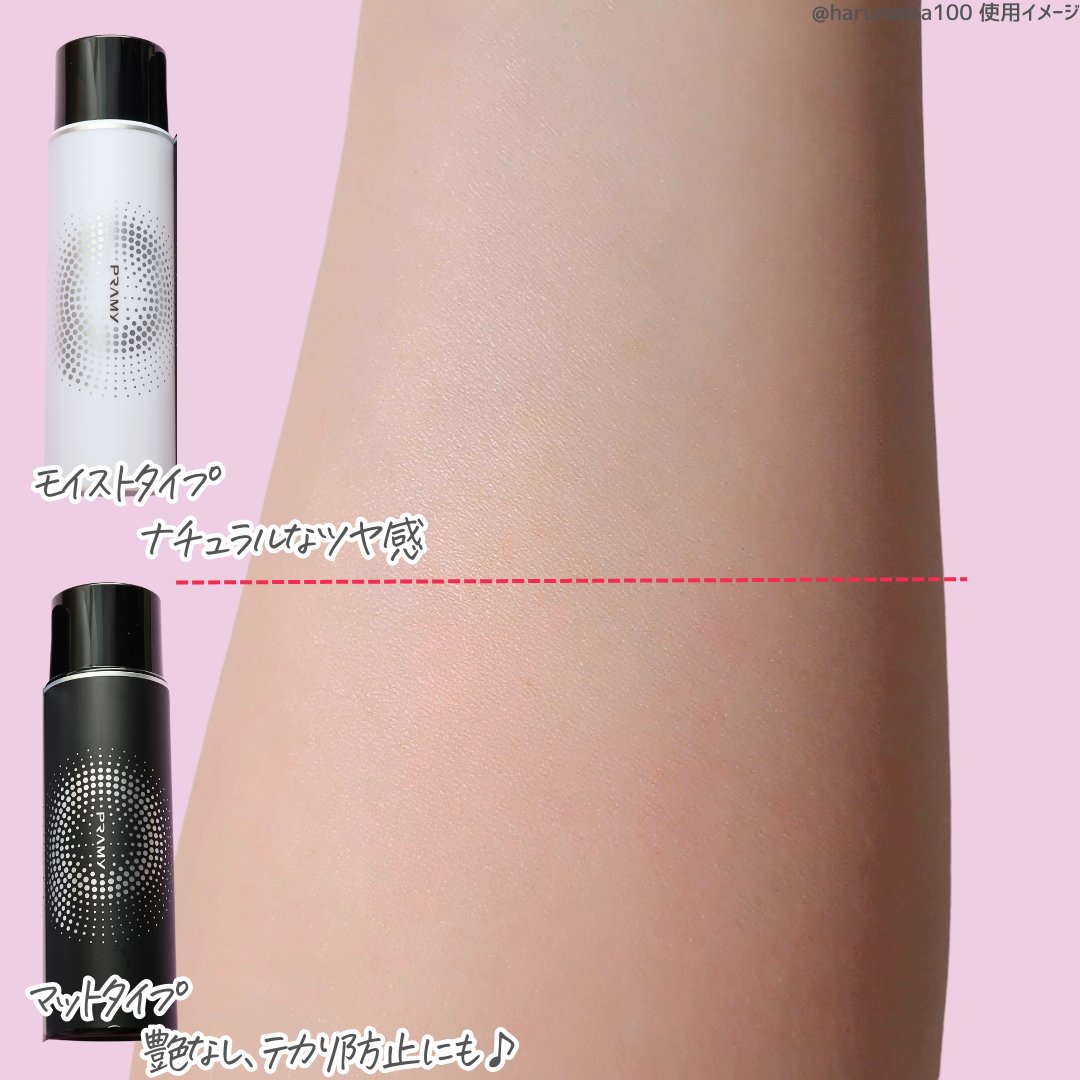 中国で爆売れしているプラミーのメイクアップセッティングミスト。これね、マットとモイストと仕上がりが選べるミストです。 マットタイプがあるのって珍しい!マットはテカリ・べたつきを防いでくれるから脂性肌さんにおすすめ。 どちらもダマスクバラ花水が入っているからか、めちゃくちゃいい香りするよ🌹