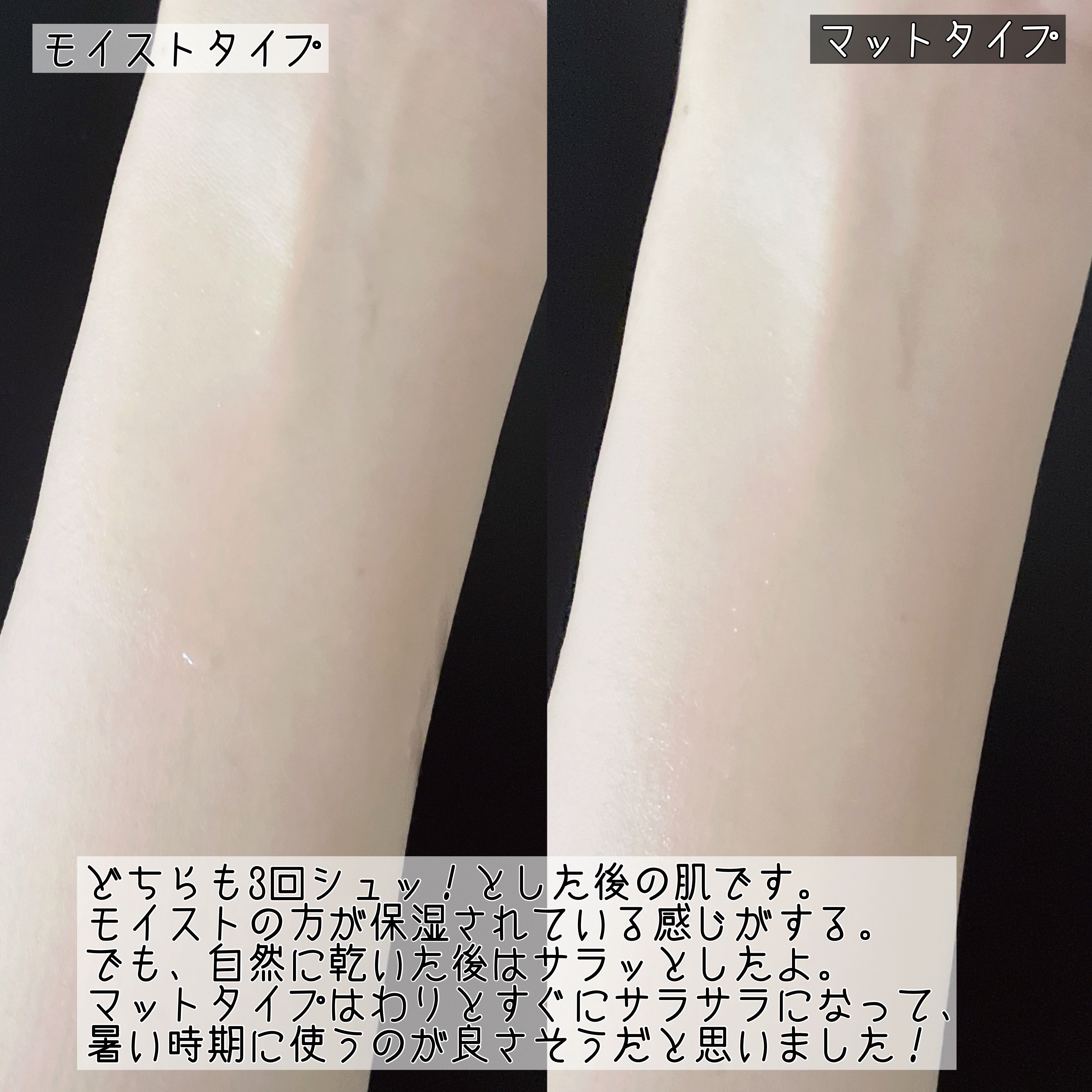 中国で爆売れしているプラミーのメイクアップセッティングミスト。これね、マットとモイストと仕上がりが選べるミストです。 マットタイプがあるのって珍しい!マットはテカリ・べたつきを防いでくれるから脂性肌さんにおすすめ。 どちらもダマスクバラ花水が入っているからか、めちゃくちゃいい香りするよ🌹