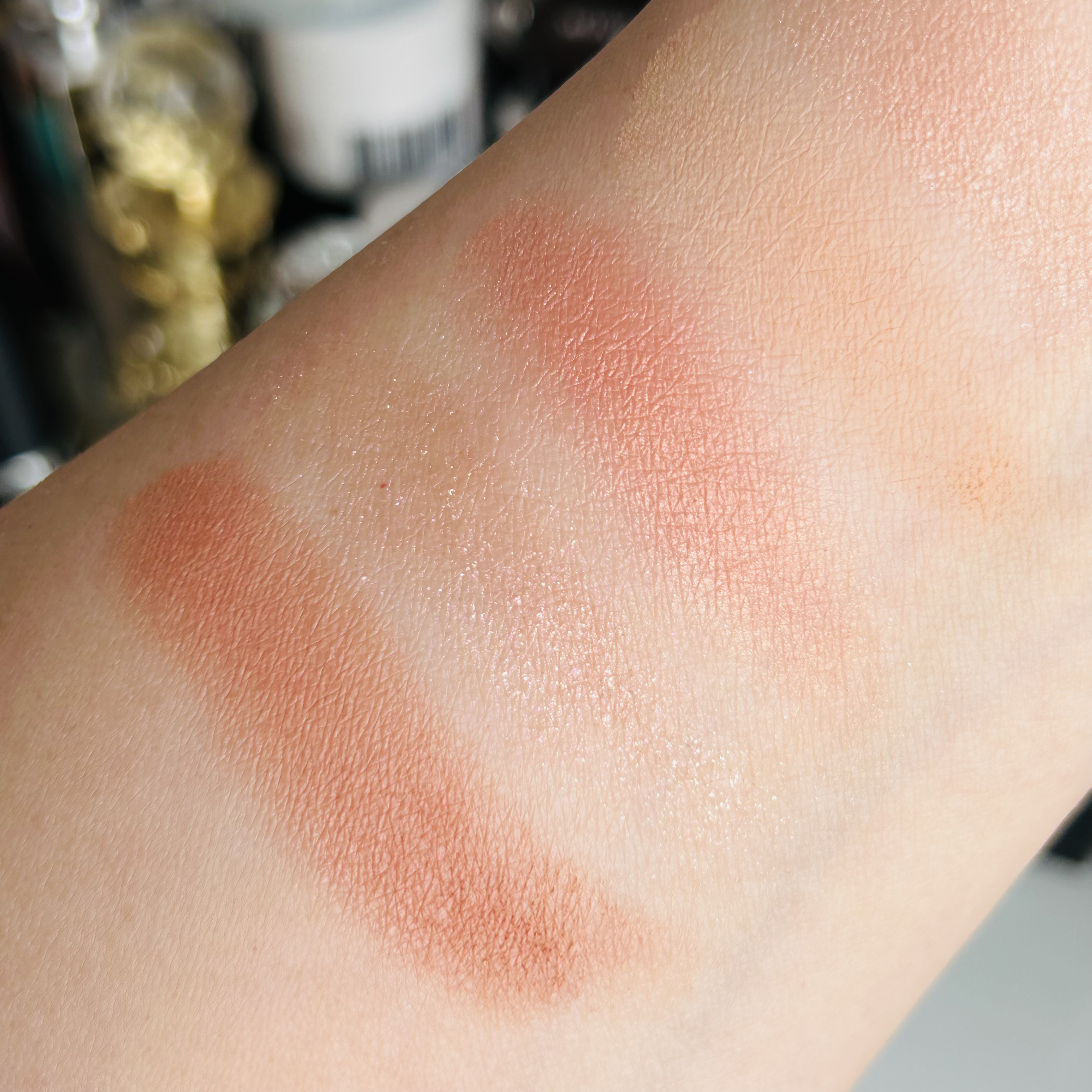 これは可愛いー!✨✨ミシャグリッタープリズムシャドウホリデー限定と、PLAZA、MINiPLA限定カラー🎄✨coyuちゃん、情報ありがとう💕ホリデー限定の、GEX02くすみピンクベース×グリーン、ブルーグリッターGEX01メタルベージュ×ゴー...