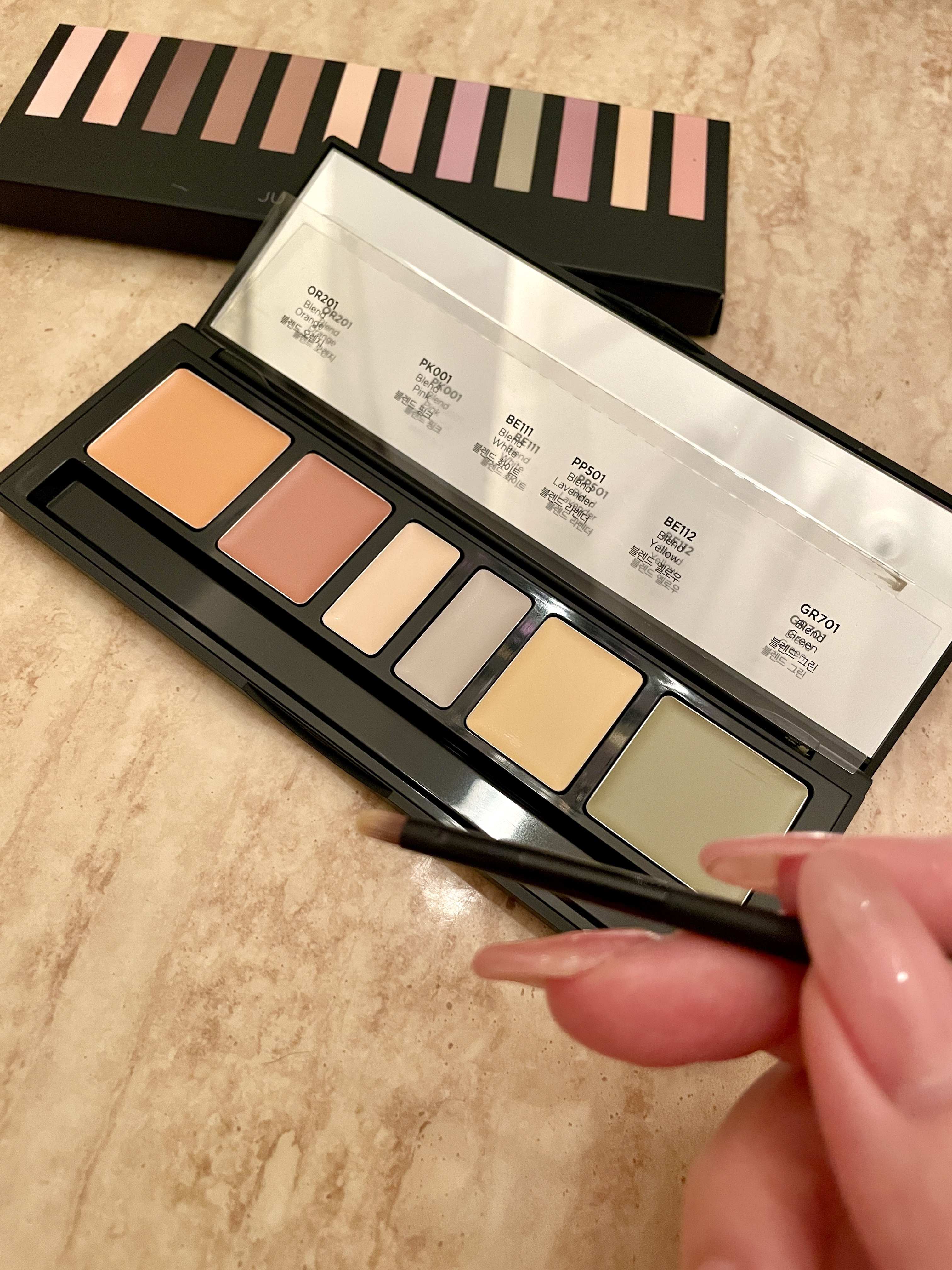 カバー力にこだわりをギュッと詰め込んだコンシーラーパレットが登場💐 韓国の有名メイクアップアーティスト『Sunmiさん』と共同開発された新作のコンシーラーパレットは、悩み別に使いやすいテクスチャーやカラーと、カバー力にこだわって使いやすさ重視で制作されたパレット♡ このパレットにはパウダーも付いていて、コンシーラーとパウダーがセットになっているってあまりみた事なく個人的には新鮮!