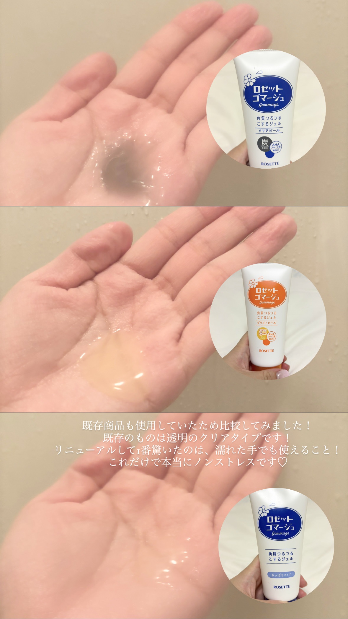 【角質ケア!ロゼットゴマージュ2種比較】ロゼットロゼットゴマージュブライトピール[洗浄料]ロゼットゴマージュクリアピール[洗浄料]肌のざらつきが気になり使ってみました。濡れた肌にも使えるので私はお風呂の中で使用しています◎湯船に浸かりながら優...