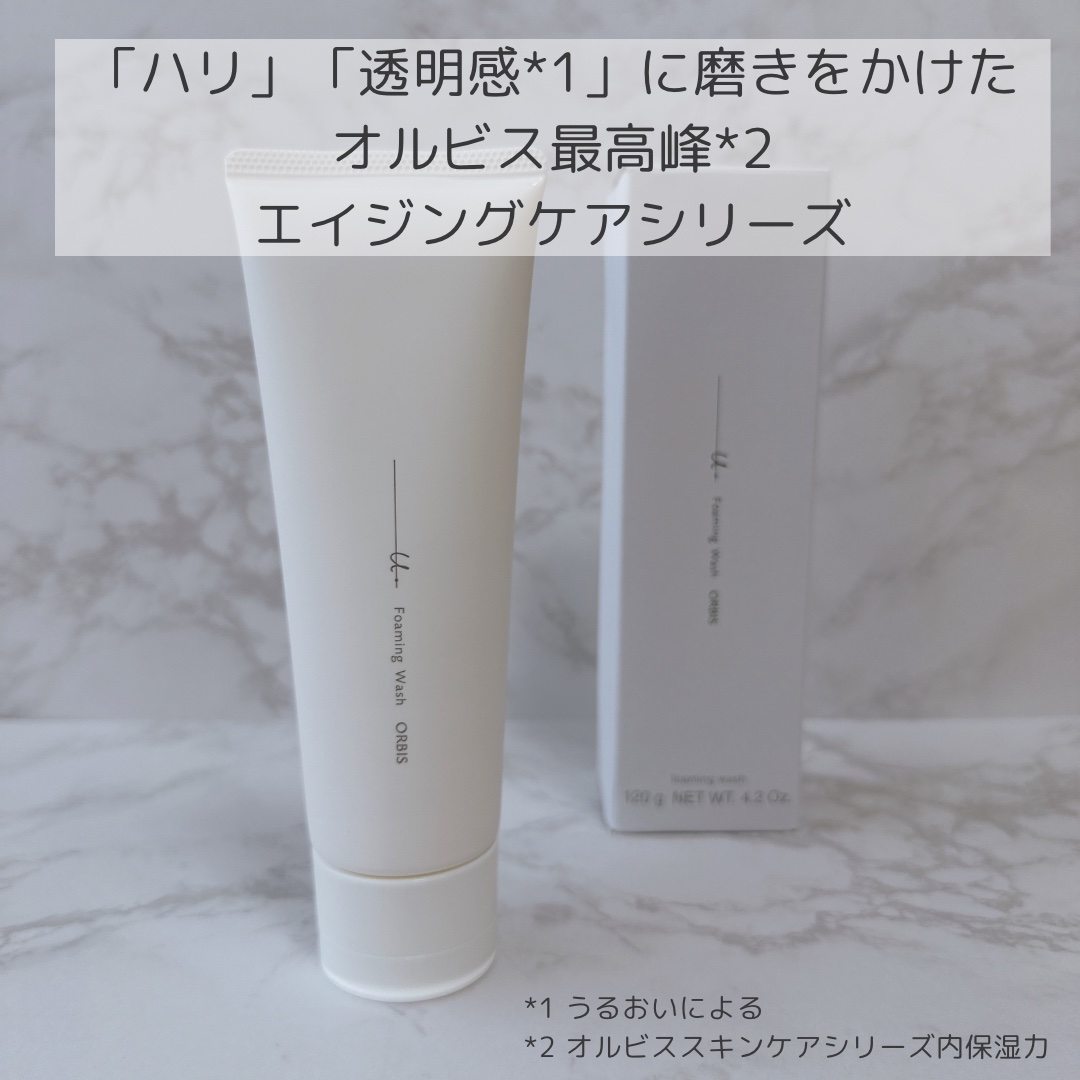 - 【医薬部外品】 年齢サイン※1を徹底ケアし上向き※2 透明美肌※3 へ導く、 オルビス最高峰※4 エイジングケア※5 シリーズがパワーアップします。 ねっとり泡が蓄積した角質を絡めとる吸着力×なめらかな後肌を両立した「マイルドピーリング※6 処方EX」を採用。弾力感のあるねっとり泡が蓄積した角層※7 をおだやかに取り去る「高密着泡成分※8」と、洗顔後に肌に残る「シルキースムース成分※9 を配合し、ローションのなじみやすい肌に整えます。 【叶える肌】肌をごわつかせていた古い角層が取れ、ふっくら※10と柔らかくなめらかな洗いあがり。 ※1 乾燥、ハリ・ツヤのなさ ※2 気持ちのこと ※3 うるおいによる透明感のある肌 ※4 オルビス内スキンケアシリーズの保湿力 ※5 年齢に応じたお手入れのこと ※6 洗浄による物理的効果 ※7 剥がれずに肌に蓄積した古い角層 ※8 ヒドロキシプロピルメチルセルロース(洗い上がりの肌のなめらかさを保ち、化粧水のなじみを良くする成分) ※9 親油型ステアリン酸グリセリル ※10 角層まで