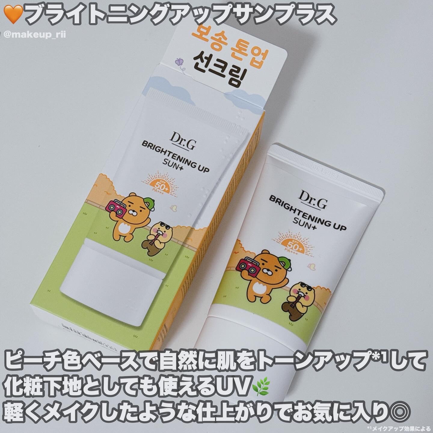 韓国を代表するドクターズコスメティックブランド「Dr.G」のUVクリームを使いました˚✧ ほんのりピーチカラーなので、血色感をプラスしながらトーンアップできることが特徴で、白浮きせずに肌をトーンアップしてくれるので、化粧下地としてはもちろん、ちょっとしたお出かけならこれだけでもOK! サラッとした肌が続くのもありがたい👏