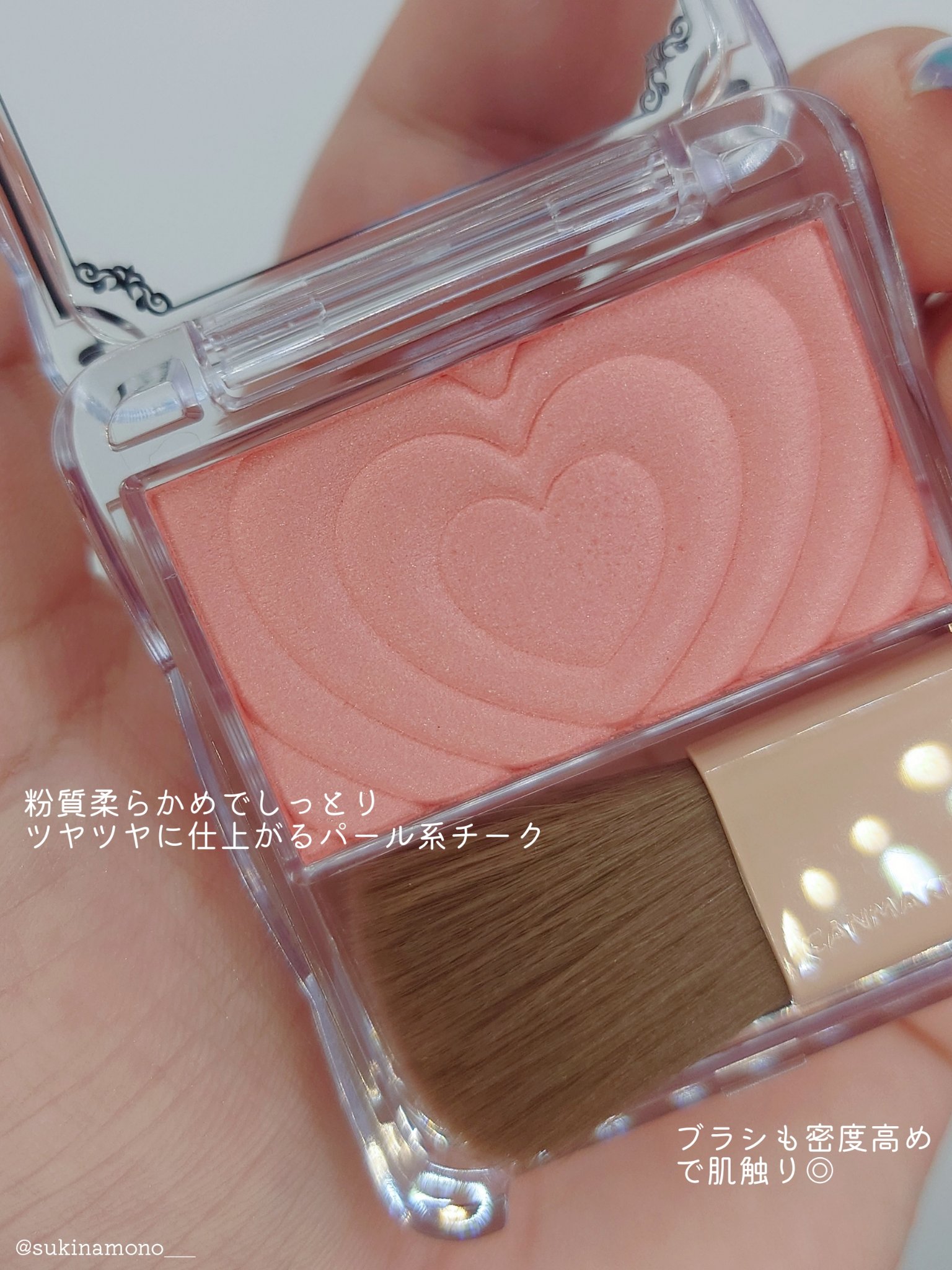 - 生まれ変わった、新・パウダーチークス! クリアな発色でしっとり溶け込むようなツヤ感単色チーク♡ 1.デザインがさらに可愛く♡ 使うたびにキュンとしちゃうハートデザイン♪ 2. 中身がもっと魅力的に ・しっとり感UP!※ ムラになりにくいクリアな発色 ・パール感がさらに繊細に!※ 溶け込むような自然なツヤ感です♪ 3. ブラシの毛量UP※ 広範囲に広げやすいふんわりブラシに進化! ※当社従来品比