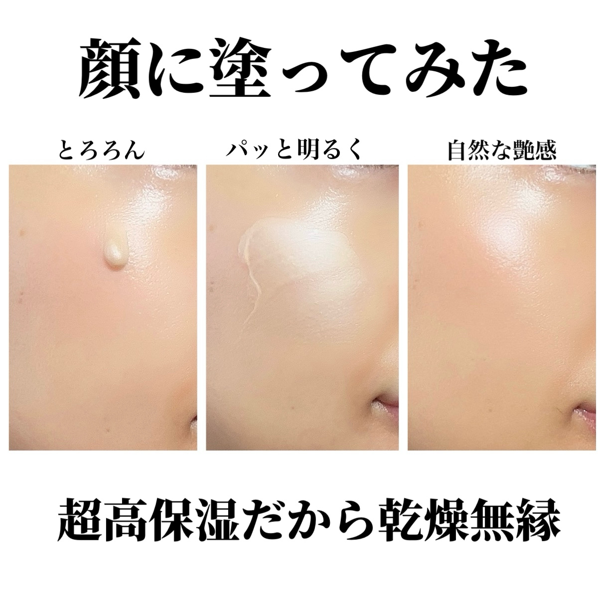 スキンケアとメイクアップを融合させた新感覚アイテム!肌にゴールドのツヤをもたらしつつ、自然なトーンアップ感で明るさもプラスしてくれます。 みずみずしい輝きでデイリー使いにも凄く良いです。保湿セラムとしても、化粧下地やハイライターとしてもいろんな使い方ができます。 とても軽いテクスチャーでベタつかず自然に馴染む感じが心地いいです。