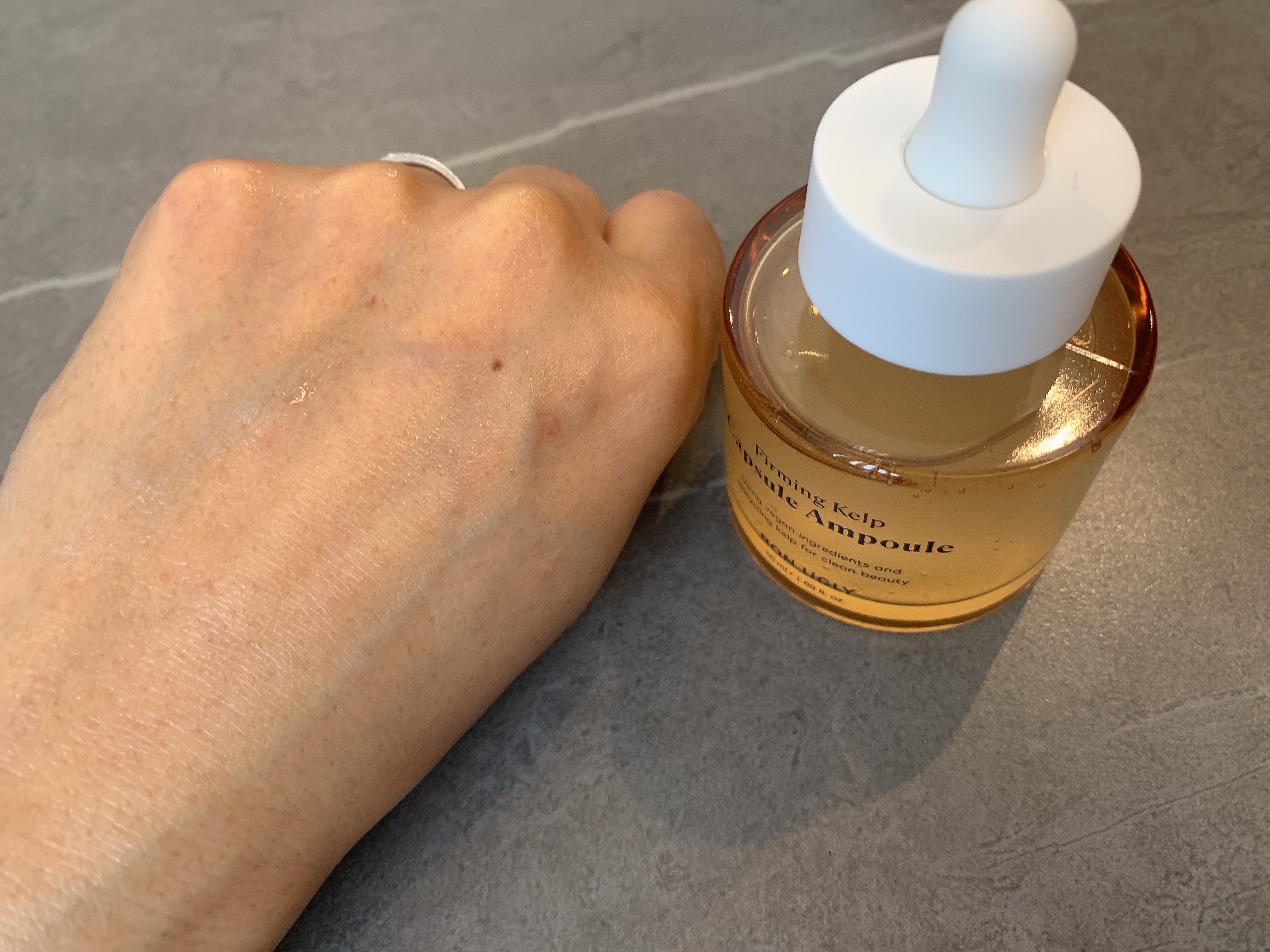 韓国のファへアワード第1位受賞した BON UGLY (ボンアグリー)ファーミングケルプカプセルアンプル50mlを使ってみたよ💖 光に透かしてよく見ると、小さいカプセルのようなつぶつぶしたものが見えます。こちらのカプセルは使うときに弾ける。抗酸化オイルカプセル✨ ニンジンから抽出した植物由来コラーゲン保湿因子が お肌の水分量を高めて弾力性を維持して細胞に栄養成分を補給してコラーゲンとエラスチンの生成を促進するそう