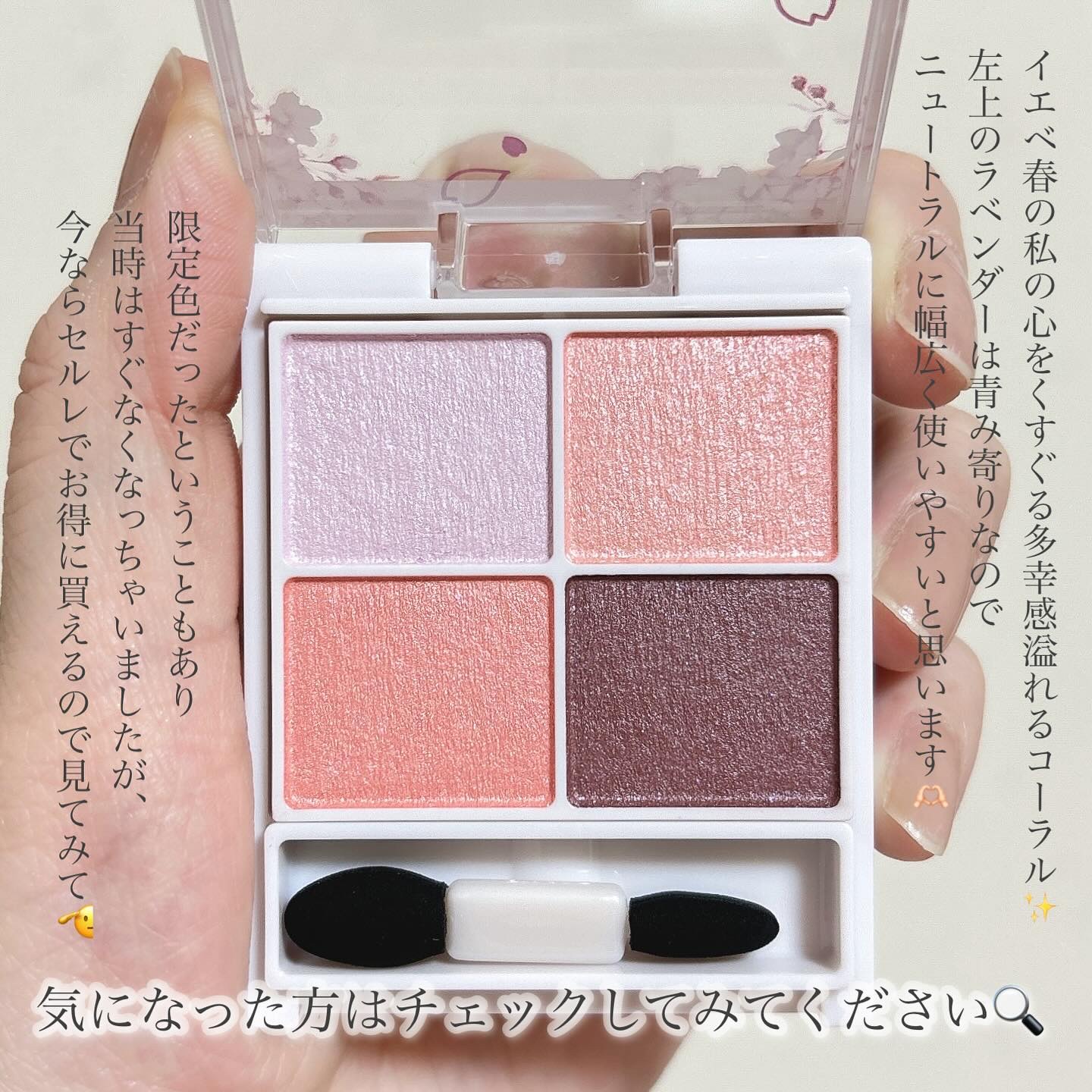 約400円で購入🌸生産終了の限定カラーに2年越しに出会いました‼️ ⭐️キャンメイク シルキースフレアイズ11ブロッサムシャワー こちらは生産終了しています。 桜の可愛いパッケージに惹かれました🌸 掘り出し物が売られているコスメショップにて発見しました👀✨ 落ち着いた可愛い桜カラーな目元になります♪ このパレットはブルベ、イエベ問わず好きな方がいそう👀