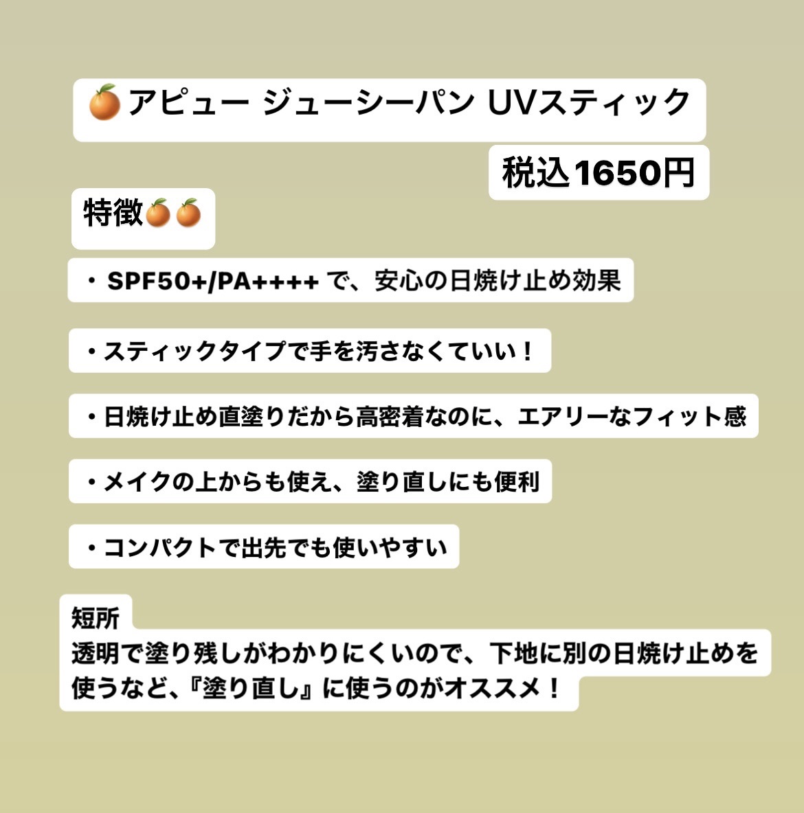商品詳細情報A’pieu アピュー ジューシーパン UVスティック(スイカバー/メロンバー)
