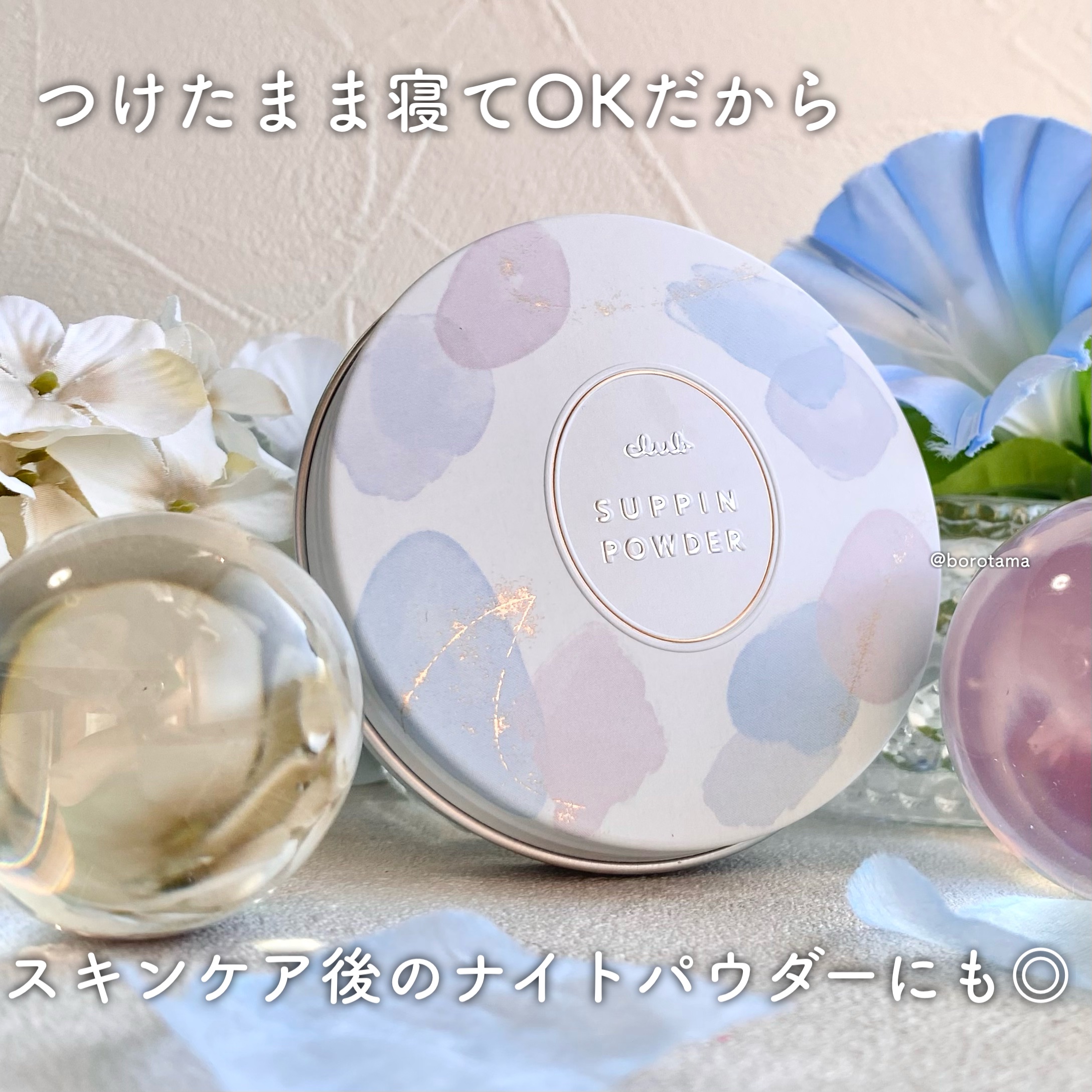 クラブコスメチックス様のキャンペーンに当選し、「すっぴんパウダーホワイトニング」スギ薬局限定デザインを頂きました🌸スキンケア処方だから、つけたまま眠れて24時間いつでも使えるのが本当に便利✨つけ心地はふんわりさらさら☺️保湿力があるのに、美白...