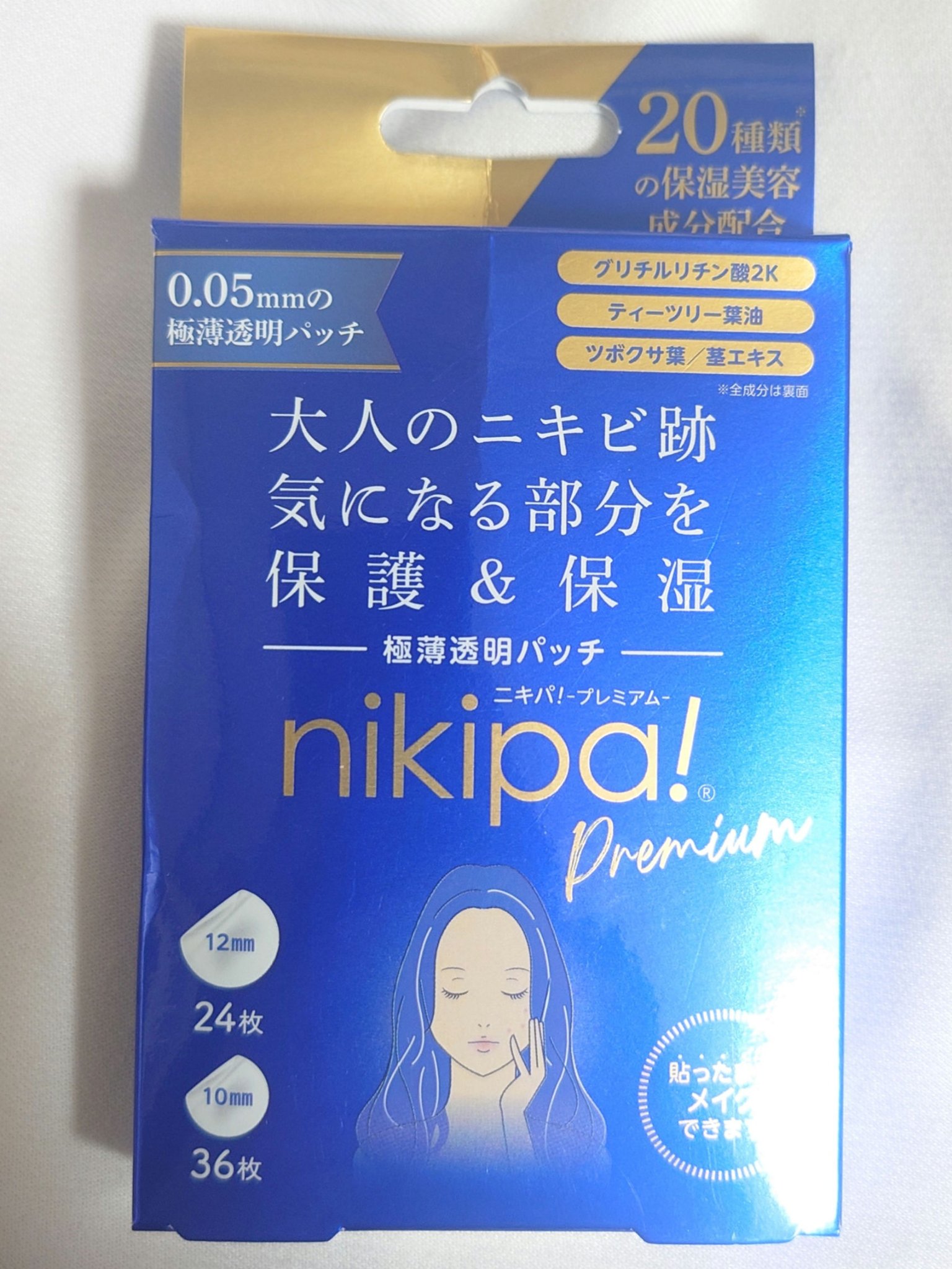 上からメイクできる、薄さ0.05mmの極薄透明パッチ「ニキパ!プレミアム」をご提供いただきました。たくさんの保湿美容成分が入っているので、気になる方は画像の箱裏をご覧ください。使い方は簡単。肌を清潔にした後しっかり水分を拭き取り、気になるとこ...