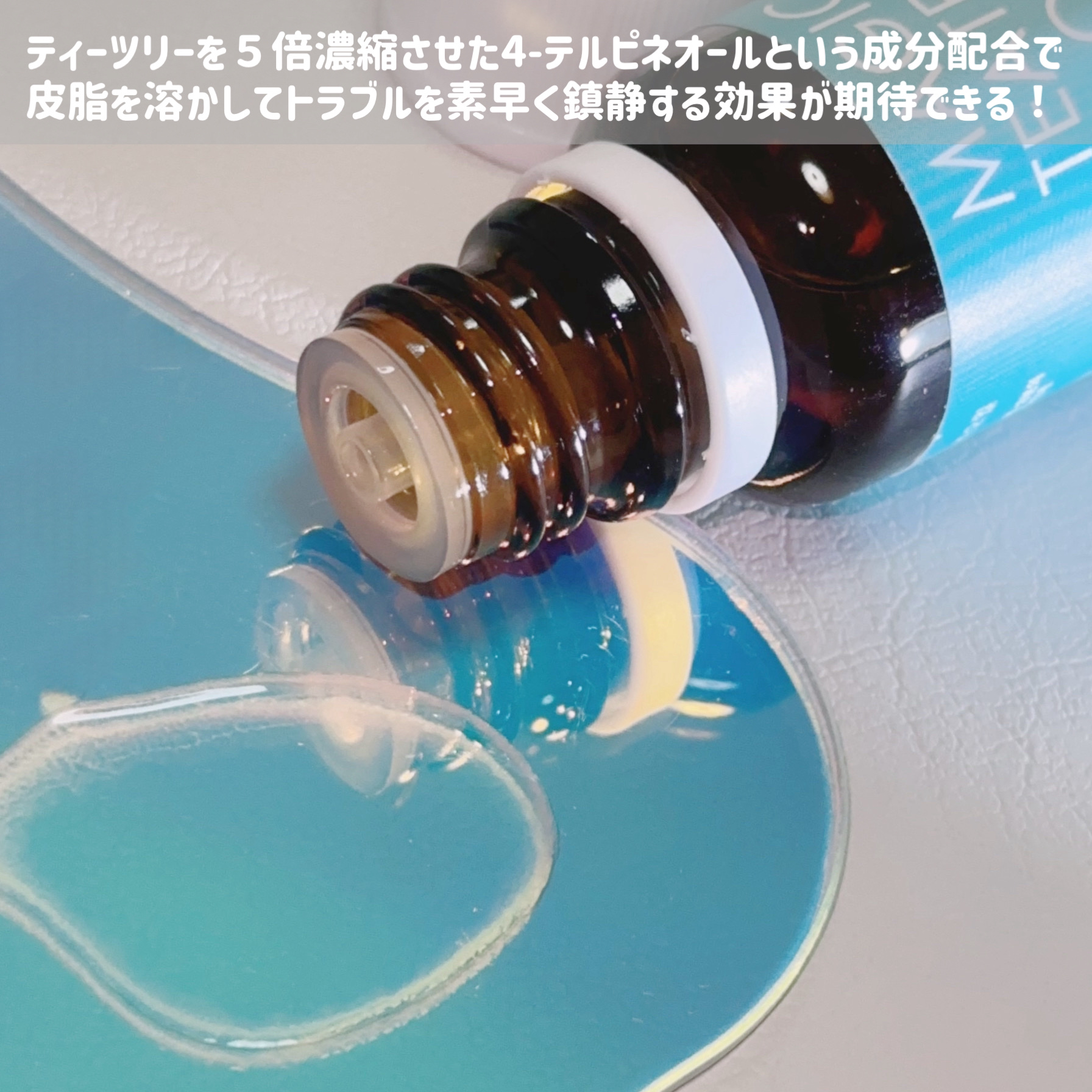 - マジックティーツリーオイルは、乾燥や皮脂による肌悩みをスポットケアし、整える商品です。ブラン代表の整肌成分である4‐テルピネオールで肌トラブルの原因の1つである皮脂を素早くケアします。 【このような方におススメ】 ✔乾燥による肌悩みが気になる方 ✔過度な皮脂と油分が気になる方 ✔べたつきのないスキンケアを探されている方 ✔肌荒れを防ぎたい方 ✔年齢性別肌タイプ関係なく使用できる商品を探されている方 【使用方法】 ①洗顔後、コットンに適量を取り、軽くふき取った後馴染ませます。 ②気になる部分の肌をきれいに洗顔後、トナー→クリームの順でお肌を整えます。 ③綿棒に1~2滴落とし、気になる部分に塗ります。 経過を見て朝晩のスキンケアの最後の段階に塗ることを繰り返します。