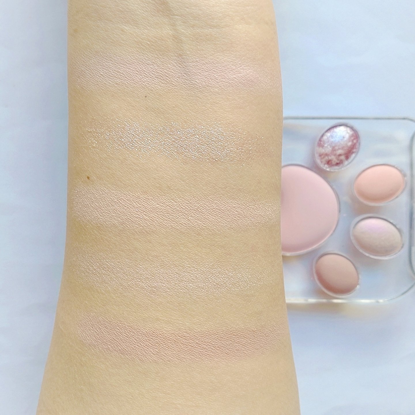 プチプラのクオリティじゃないっ!! 発売前からチェックしていたけれど、ここまで可愛いとは…😆 絶妙カラーで目もとのくすみを飛ばして*明るい印象に🩷 横割りグラデーションでメイクし、立体感をより出したかったので最後に1番左のカラーを上まぶたの真ん中と涙袋にのせています🙆 肌馴染みも良くて粉飛びも感じにくかったです💕 ブラウンの方も店頭に出てたら買おうかな💓