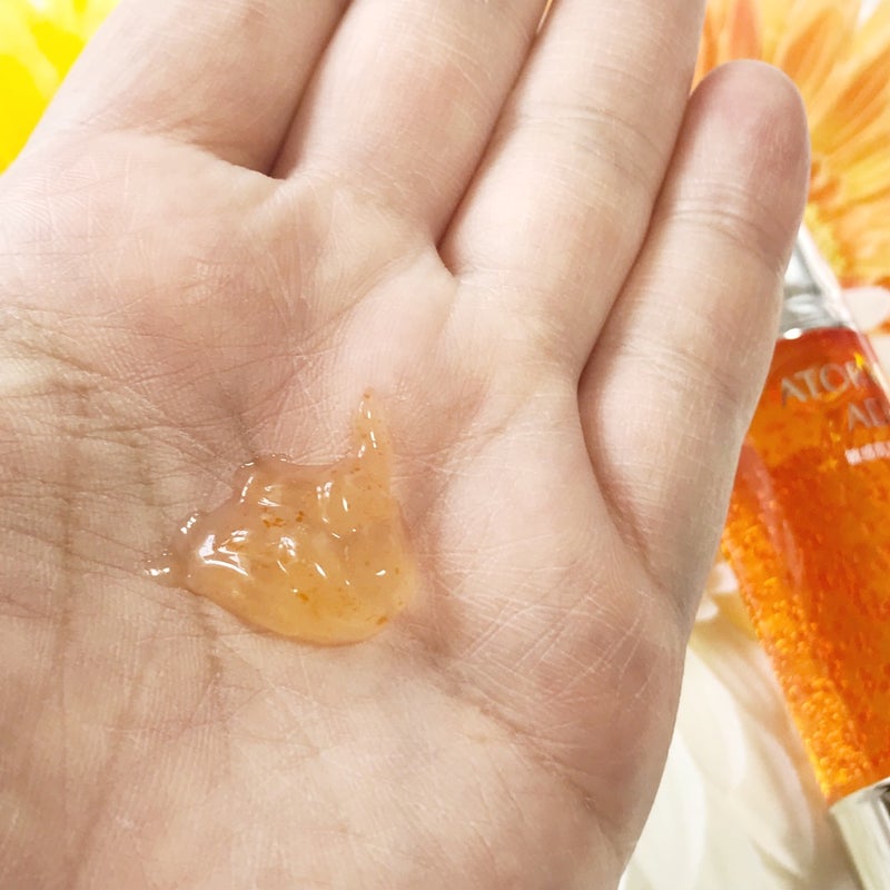オレンジ色の粒々、V3カプセル ※(うるおい成分)配合 エアレス容器採用で、たっぷりの「V3カプセル」をフレッシュな状態で角層まで届ける 香りはなく、弾力のあるジェル状ですが、伸びもなじみも良く、程よくしっとりした使い心地です。