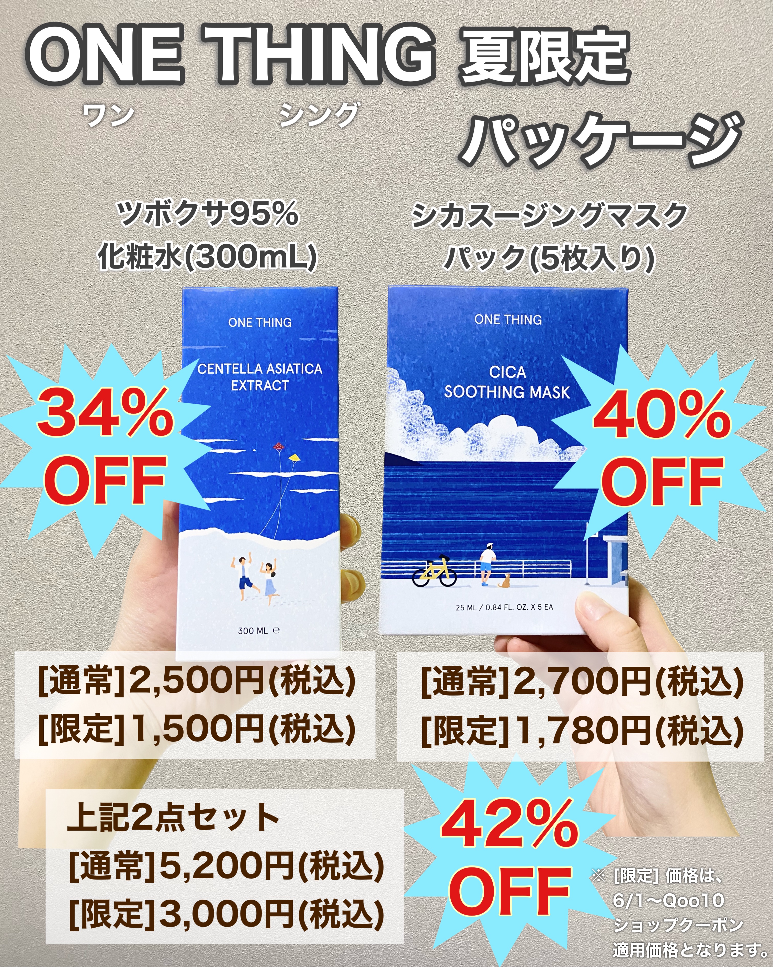 韓国スキンケアブランド「ONE THING」のBEST3商品 ☑︎ツボクサ95%化粧水 ☑︎ナイアシンアミドグルタチオンセラム ☑︎シカスージングマスクパックが入った、 私のおすすめは『ツボクサ95%化粧水』。炎症を抑えて肌を鎮静し、抗酸化作用で色素沈着を改善する効果も。 『シカスージングマスクパック』はシカアンプル一本分を丸ごと配合した贅沢なマスクパック。5分ほど貼っているだけでツヤっとした水光肌を叶えてくれるんです♡