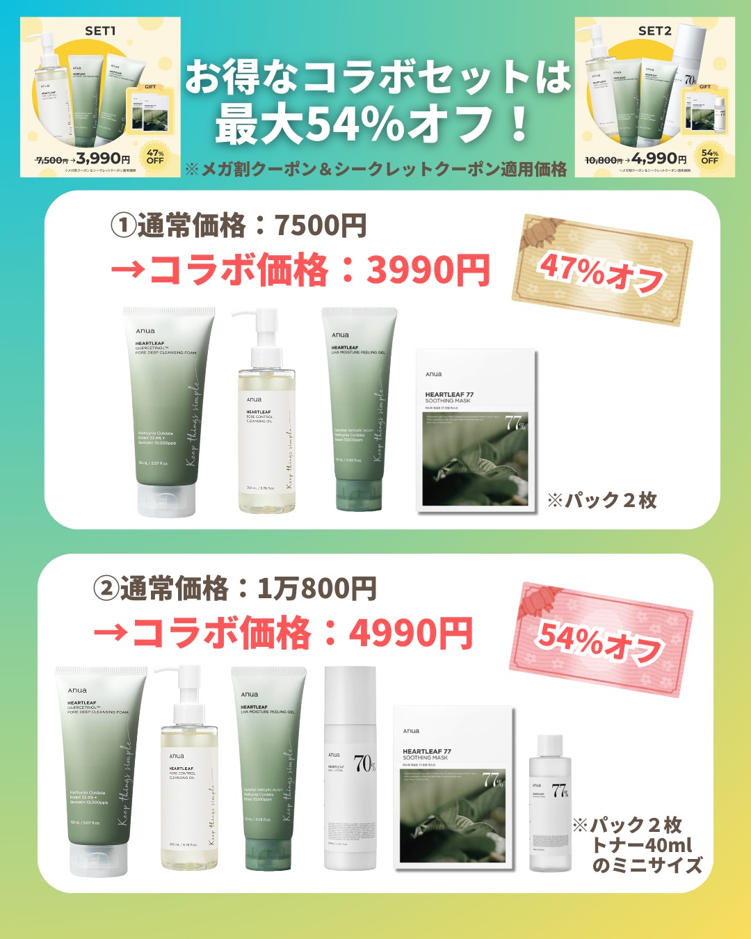 Anua ドクダミ77 % 鎮静マスクパック | 3,960円 |
