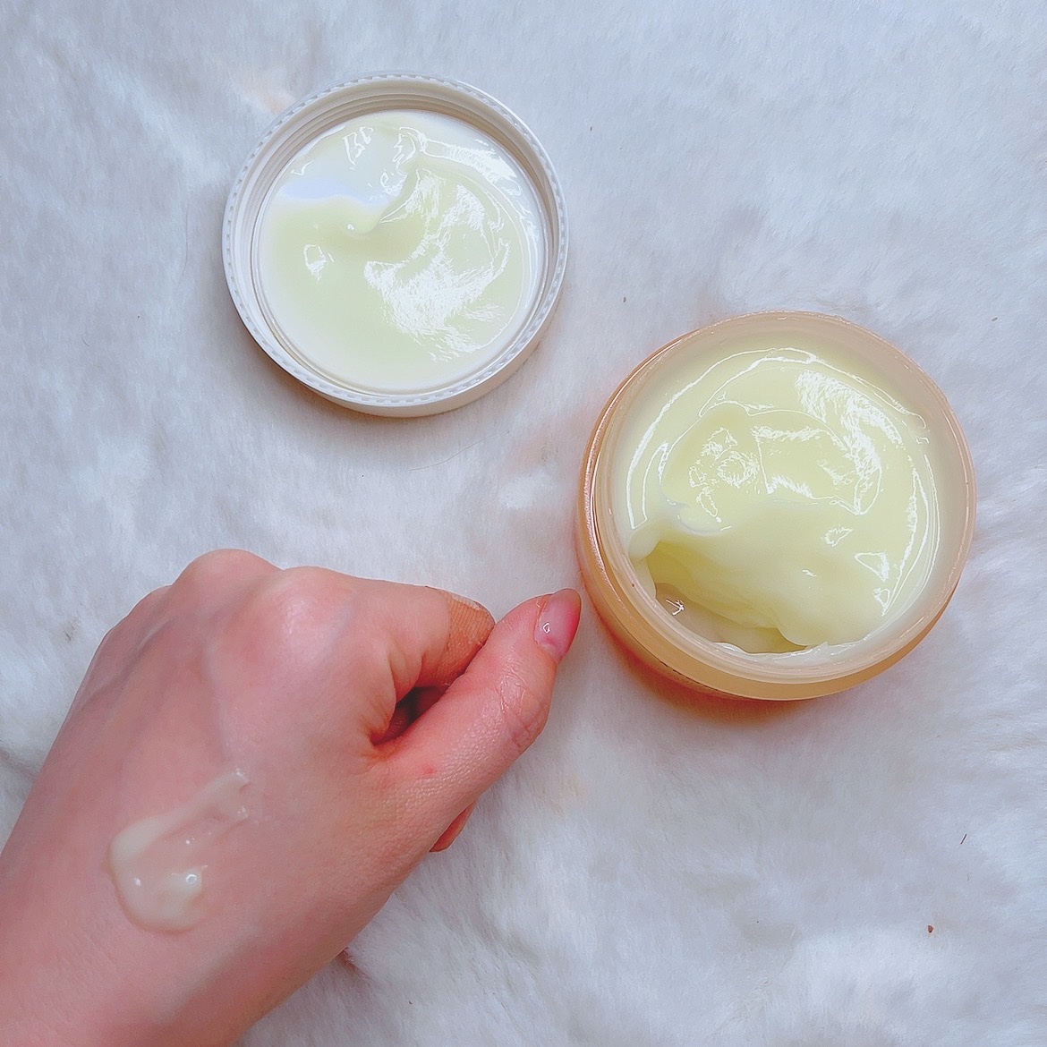 | 比較的こっくりとしたテクスチャーのクリーム。 手に取った時は少し硬めに感じるのに、伸ばすと瑞々しく伸びて、その違いにびっくりした! | 詳細を見る | |||