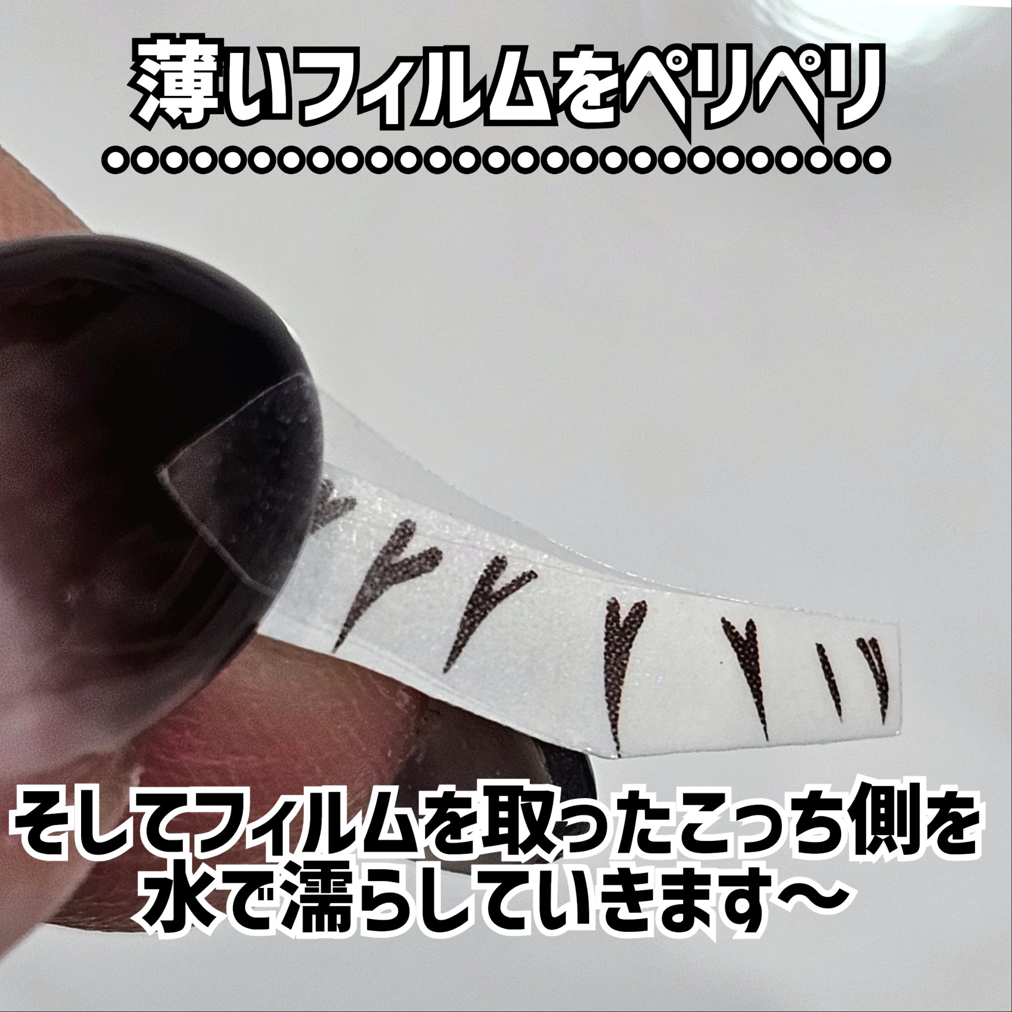 - 秒速で誰でも一瞬で別人整形級メイク。 水に濡らして貼るだけ下まつげタトゥーシールがカット不要になって時短パワーアップ! なりたい目の形に合わせて貼るだけで、滲まずよれないゴージャスな下まつげメイクが簡単に。