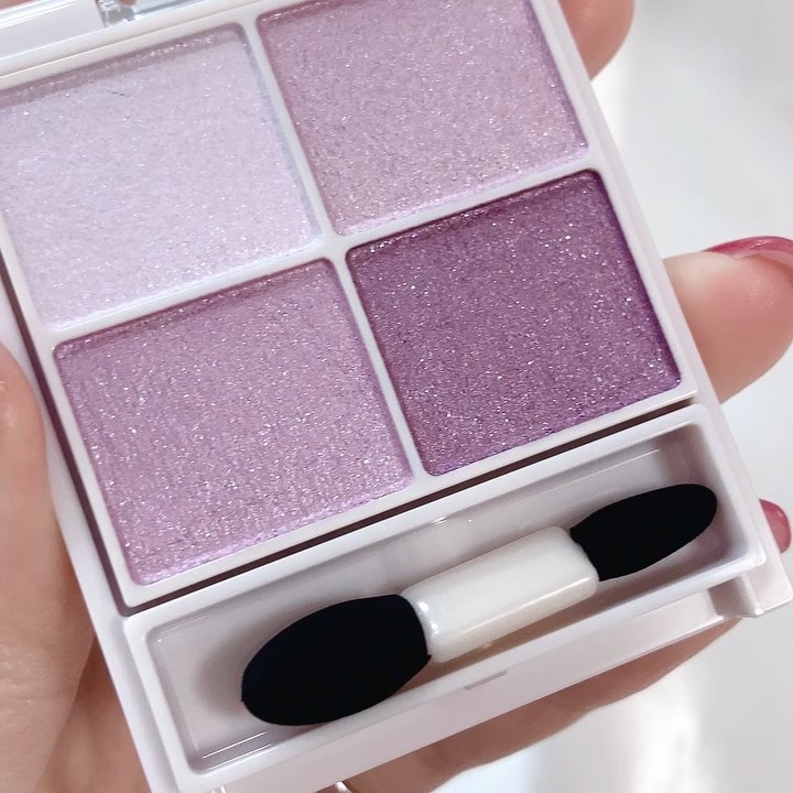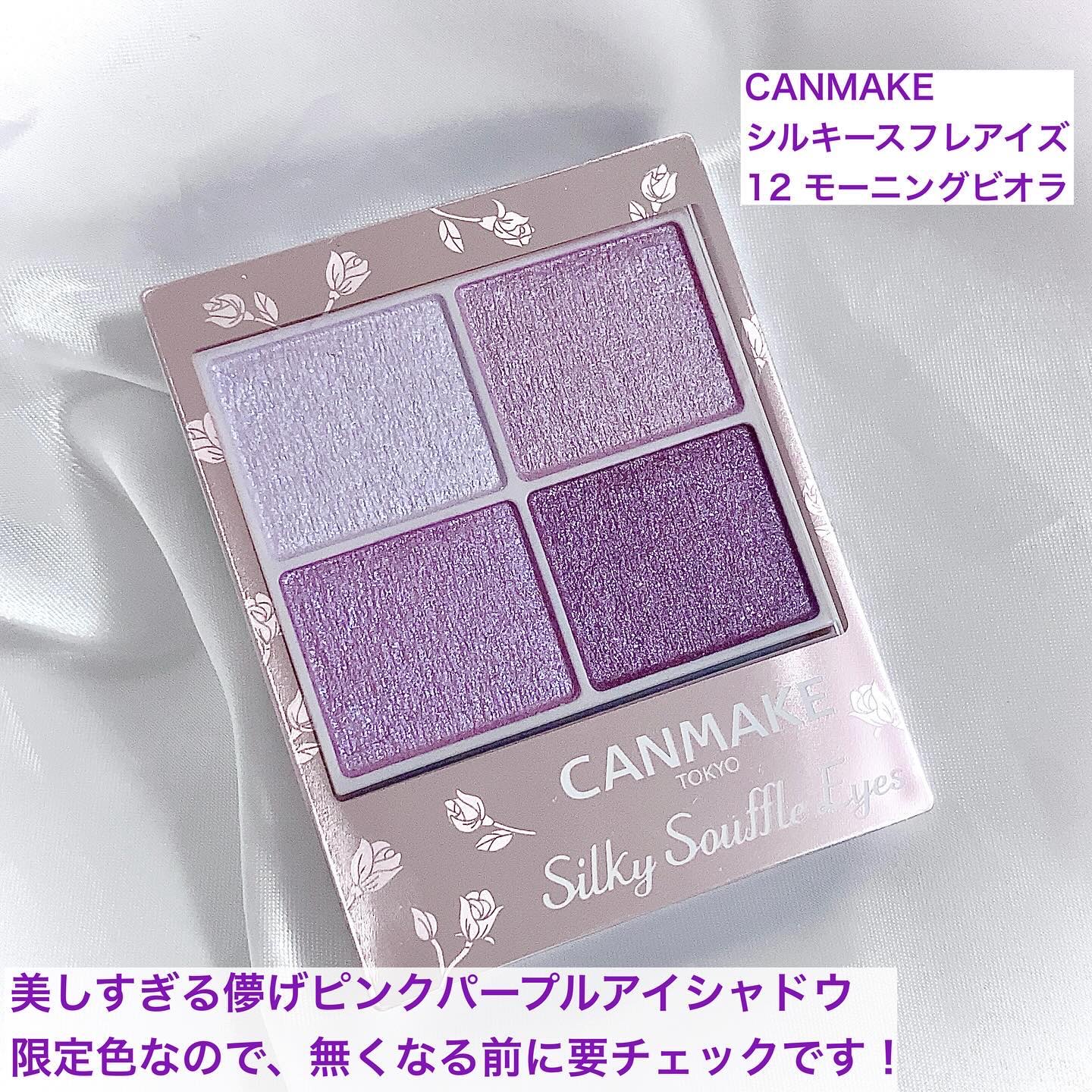 キャンメイクのパープルが可愛い🪻キャンメイクシルキースフレアイズ12モーニングビオラ淡目のピンクパープルのパレット🪻青ラメが入っていて綺麗✨透明感でるカラーで普段パープル使わないけどこれは可愛いなと思った💜#canmake#キャンメイク#シル...