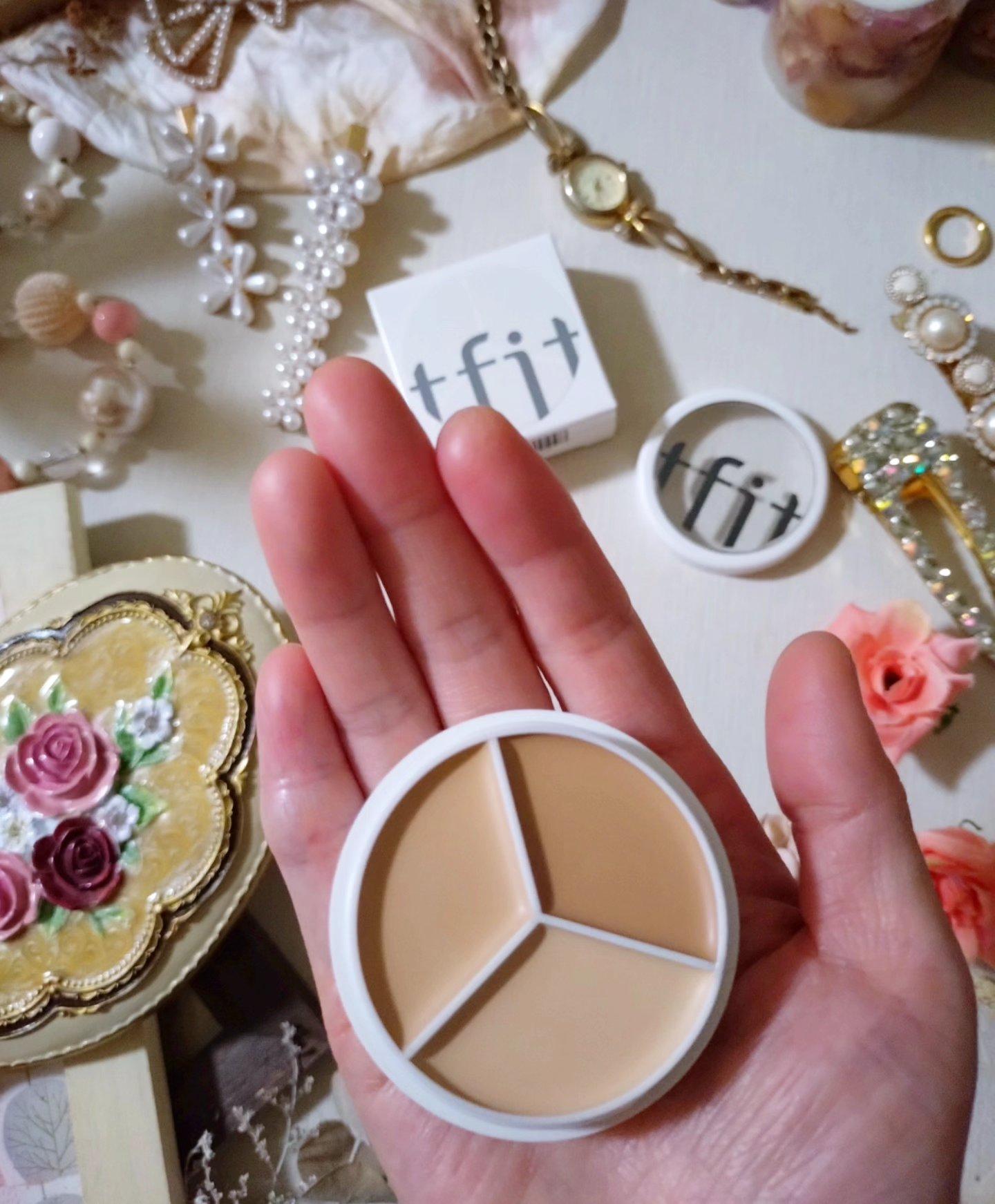 TFITといえばカバー力抜群のコンシーラーでおなじみだよね。クマ、トラブル肌の悩みを解決してくれるロングラスティングハイカバーコンシーラー。 従来の単色コンシーラーから脱却した「3色コンシーラー」。単色でも混ぜても使用可能! コンシーラーを調色して使えるから肌悩みに合わせた色を作れて気になる部分をカバーできるのでおすすめ!