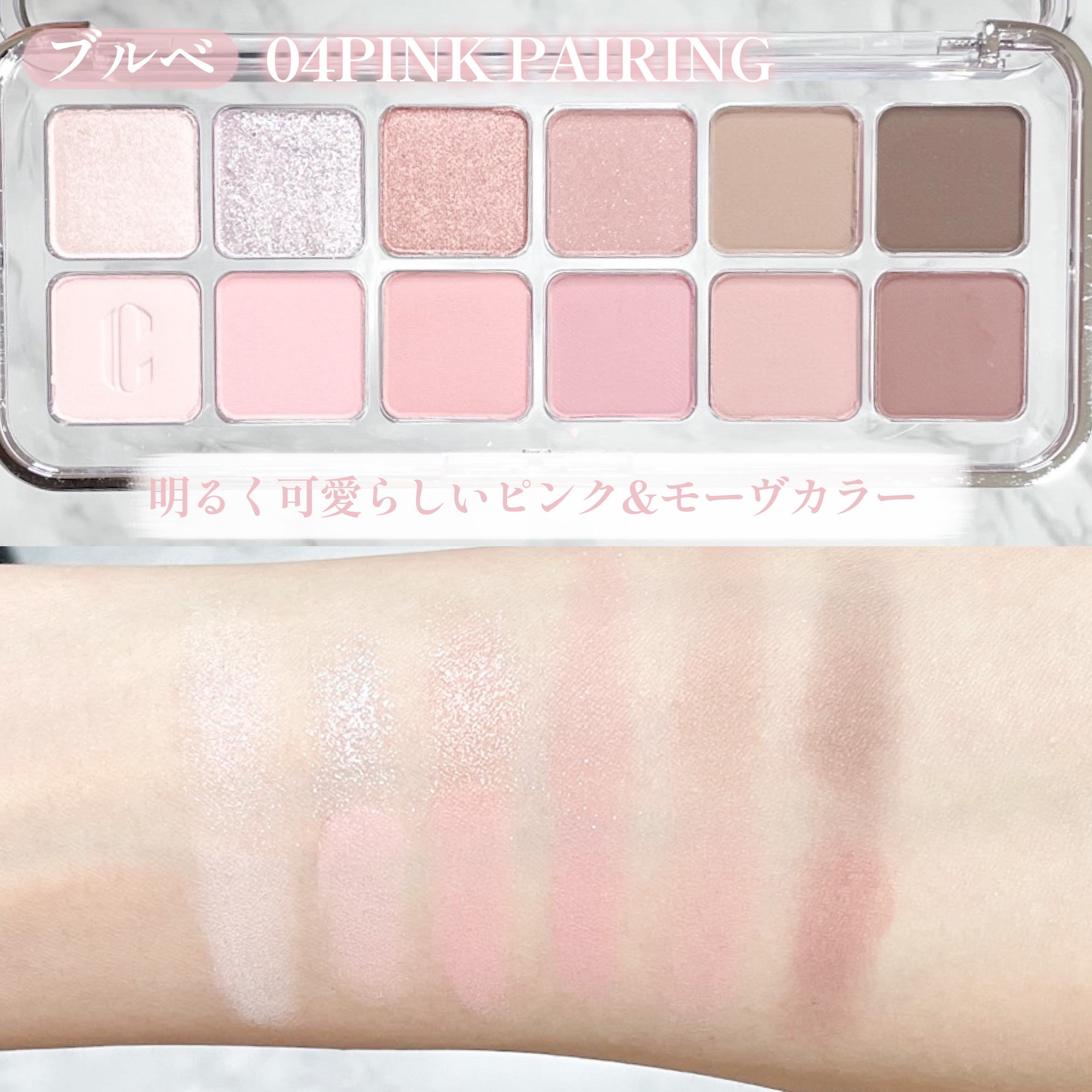 - 軽やかテクスチャーが目元に密着し、抜け感のある色使いが楽しめるデイリーパレット <101 ローズダイアリー(ROSE DIARY)> オーナメントを飾り付けたローズツリーのようにほのかに輝くウォームローズピンクカラー(イエベ秋)。 <102 ミュートアーカイブ(MUTE ARCHIVE)> 少女たちのピンキーなホームパーティームードを盛り込んだクールでヌーディーなミューテッドモブカラー(ブルべ夏ミュート)。 <103 バニラヘイズ(VANILLA HAZE)> 焼きたてのジンジャークッキーのように暖かく香ばしいウォームミュートカラー(イエベ秋ミュート)。 <104 GHR ピンク(GYEONGHOERU FLOWER FESTIVAL)> 春の日の美しく優雅な色を詰め込んだピンクカラーパレット。イエベ春&ブルベ夏におすすめのパレットです。 <105 DSG バイオレット(DEOKSUGUNG STONE WALL ROAD)> ほんのりピンクがかった柔らかなモーブカラーパレット。ブルベ夏&ブルベ冬におすすめのパレットです。 <106 DBG コーラル(GYEONGBOKGUNG STROLL)> 明るい日差しの色を取り入れたデイリーなコーラルカラー。イエベ春&ブライト秋におすすめのパレットです。