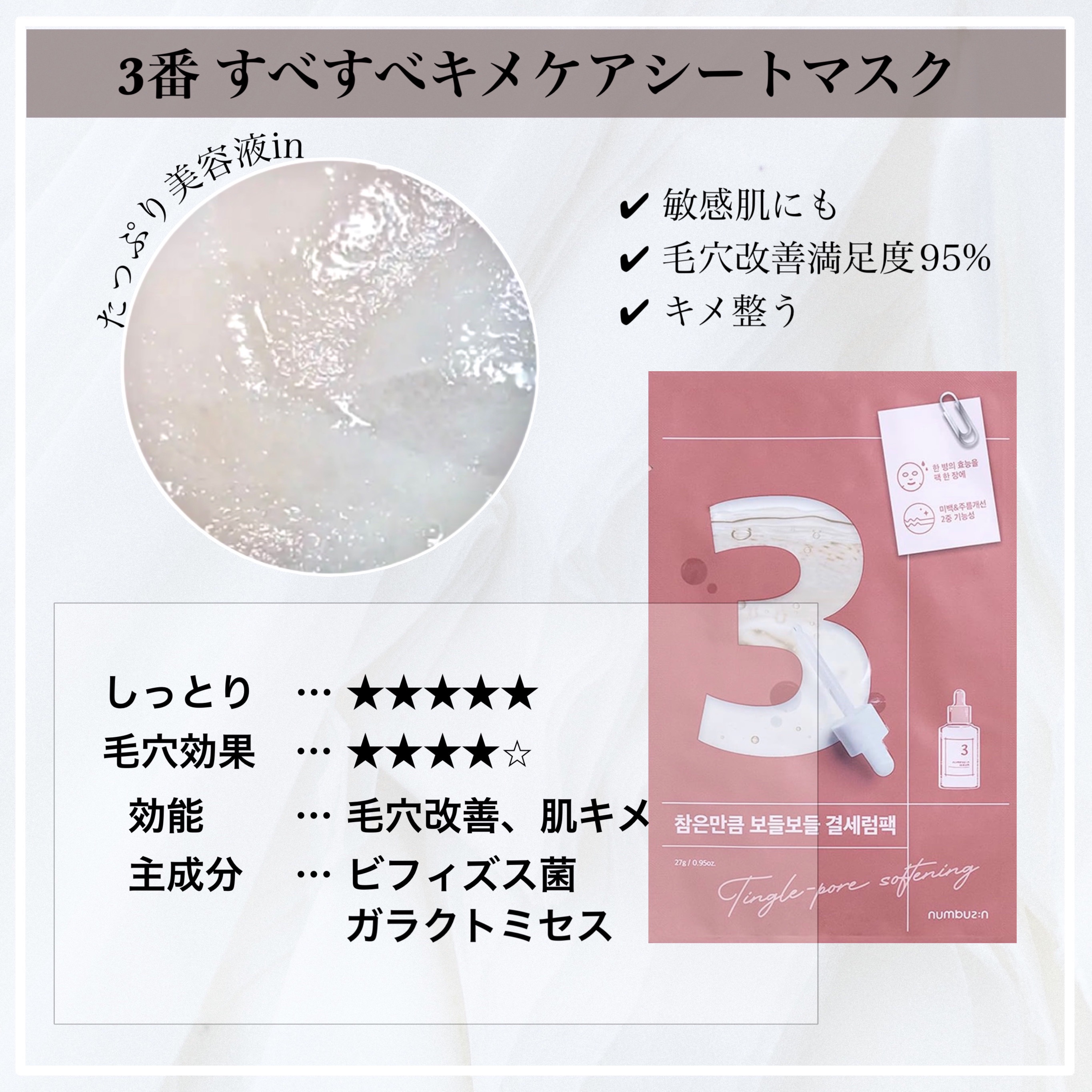 商品詳細情報numbuzin 3番 すべすべキメケアシートマスク