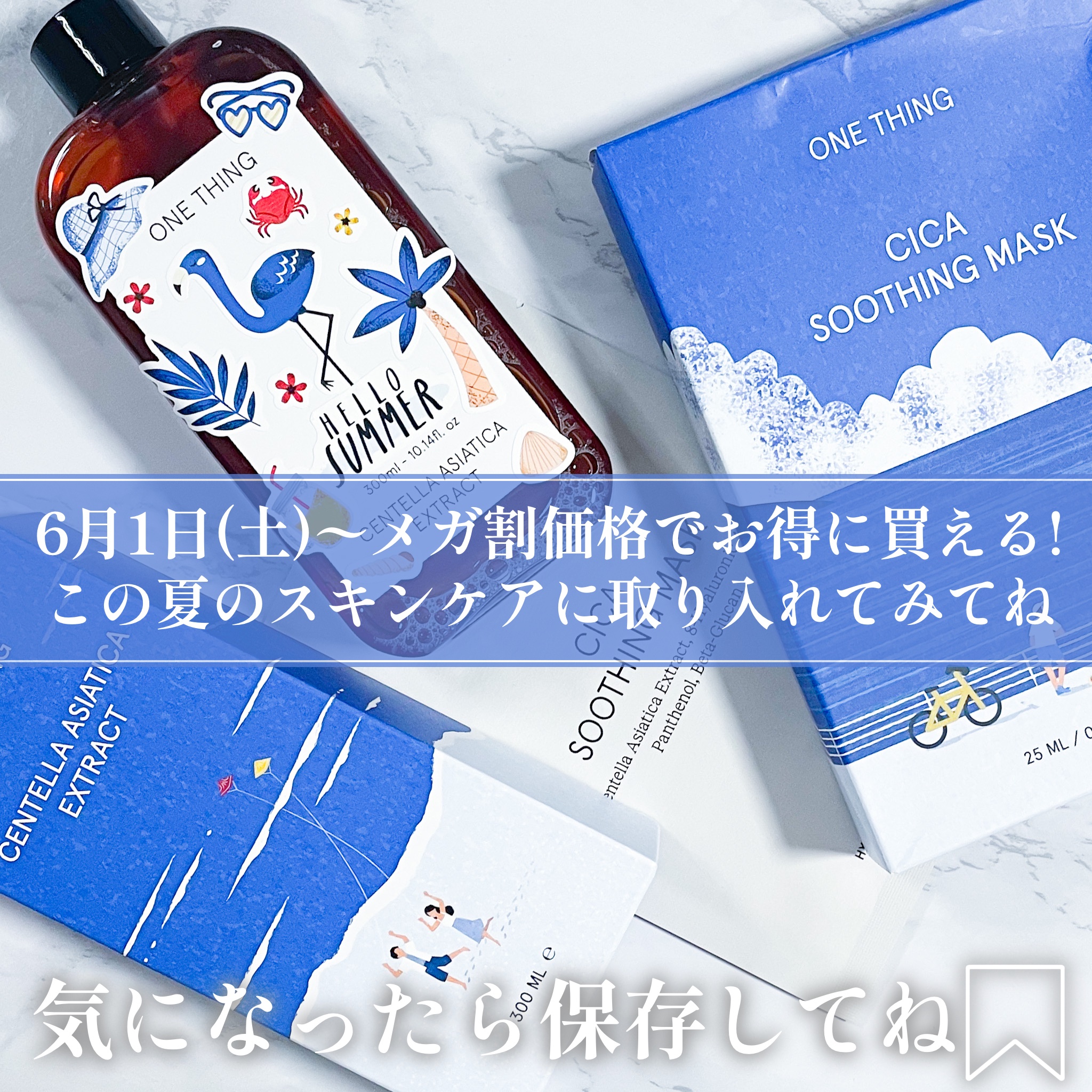 韓国スキンケアブランド「ONE THING」のBEST3商品 ☑︎ツボクサ95%化粧水 ☑︎ナイアシンアミドグルタチオンセラム ☑︎シカスージングマスクパックが入った、 私のおすすめは『ツボクサ95%化粧水』。炎症を抑えて肌を鎮静し、抗酸化作用で色素沈着を改善する効果も。 『シカスージングマスクパック』はシカアンプル一本分を丸ごと配合した贅沢なマスクパック。5分ほど貼っているだけでツヤっとした水光肌を叶えてくれるんです♡