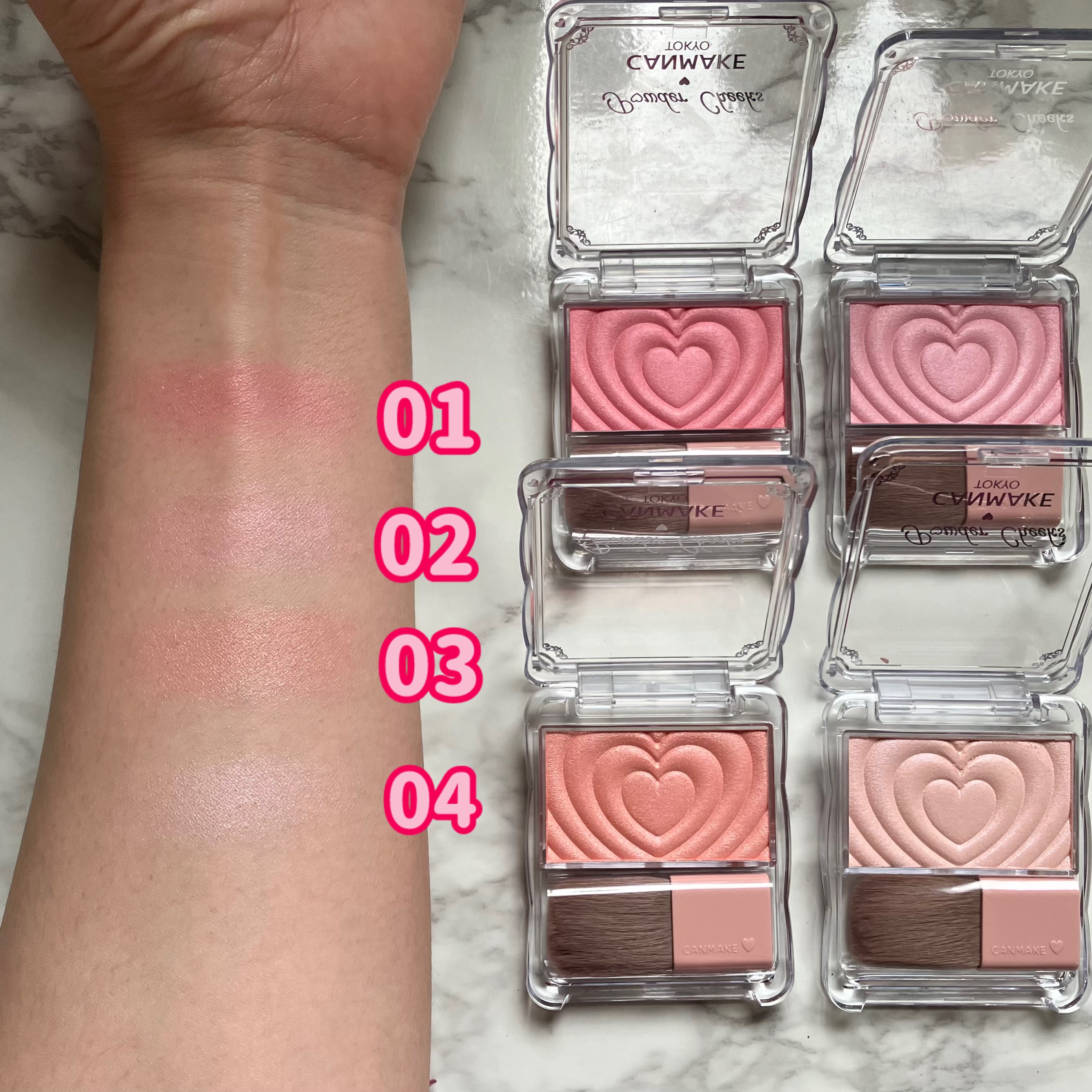 - 生まれ変わった、新・パウダーチークス! クリアな発色でしっとり溶け込むようなツヤ感単色チーク♡ 1.デザインがさらに可愛く♡ 使うたびにキュンとしちゃうハートデザイン♪ 2. 中身がもっと魅力的に ・しっとり感UP!※ ムラになりにくいクリアな発色 ・パール感がさらに繊細に!※ 溶け込むような自然なツヤ感です♪ 3. ブラシの毛量UP※ 広範囲に広げやすいふんわりブラシに進化! ※当社従来品比