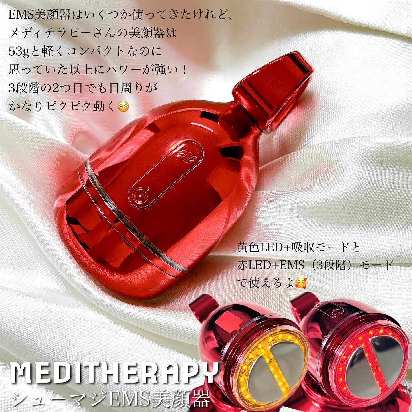 SNSでも話題のメディテラピー❤︎ ずっと気になってた美顔器とリフティングクリームをお試しさせていただいたよ𓂃𓈒𓏸 クリームの吸収を251%高めてくれる✨ ヘッドを肌に密着させて丸を描くように動かして使うよ◎ 超小型&軽量(53g)で、片手で収まる手のひらサイズ 旅行など持ち運びにもぴったりだよ🫶