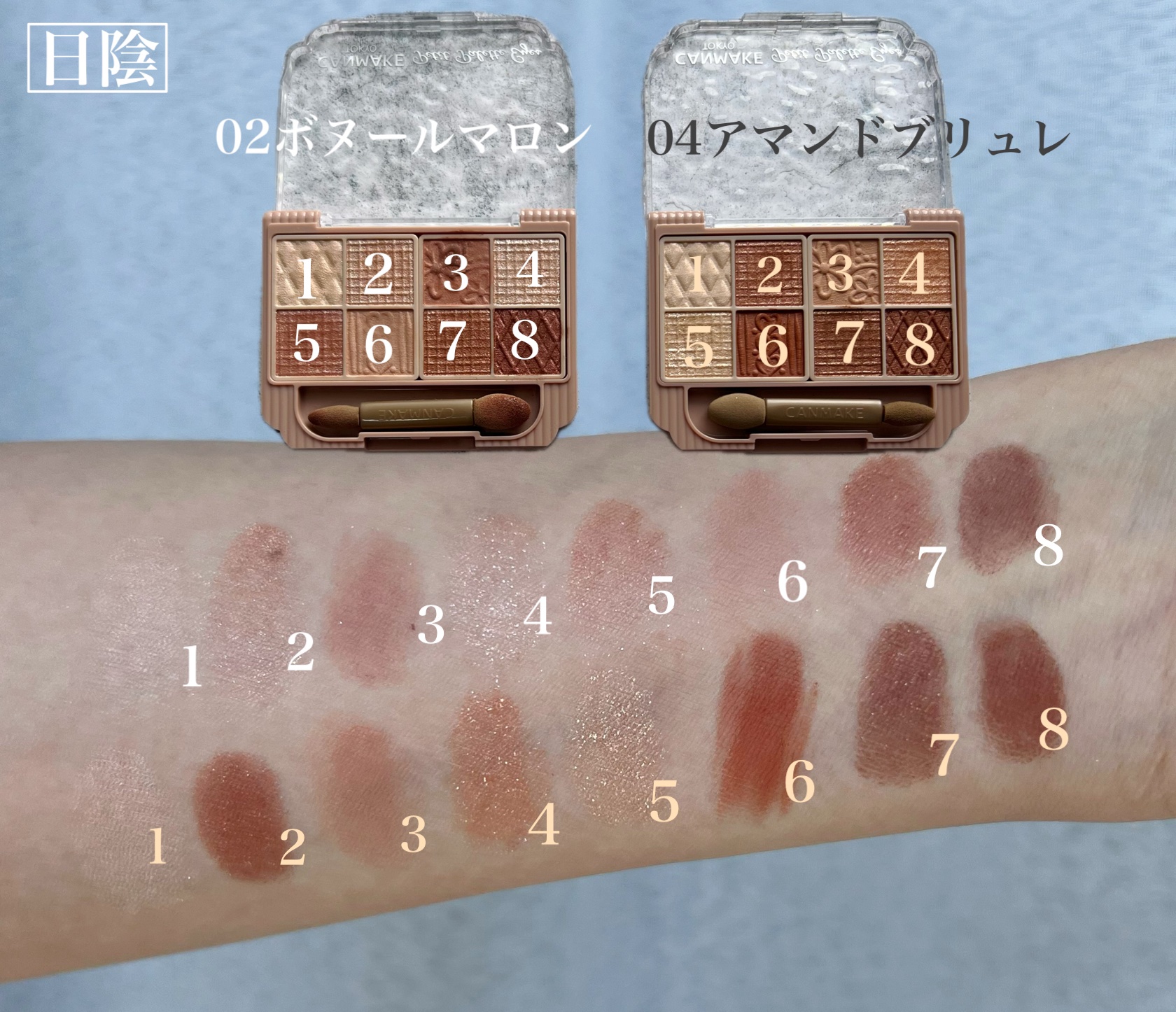 - 持ち歩ける多色パレットがキャンメイクから登場! 捨て色なしの8色入り&チップ付! 「持ち歩けること」や「外出先でもメイク直しができること」を重視した多色パレット。 持ち運びやすいサイズ感なのに、贅沢に8色入りです。 さらに便利なダブルエンドチップまで! マット×パール×ラメなど、組み合わせ方はあなたの自由! 自分好みのアイメイクを楽しめます。