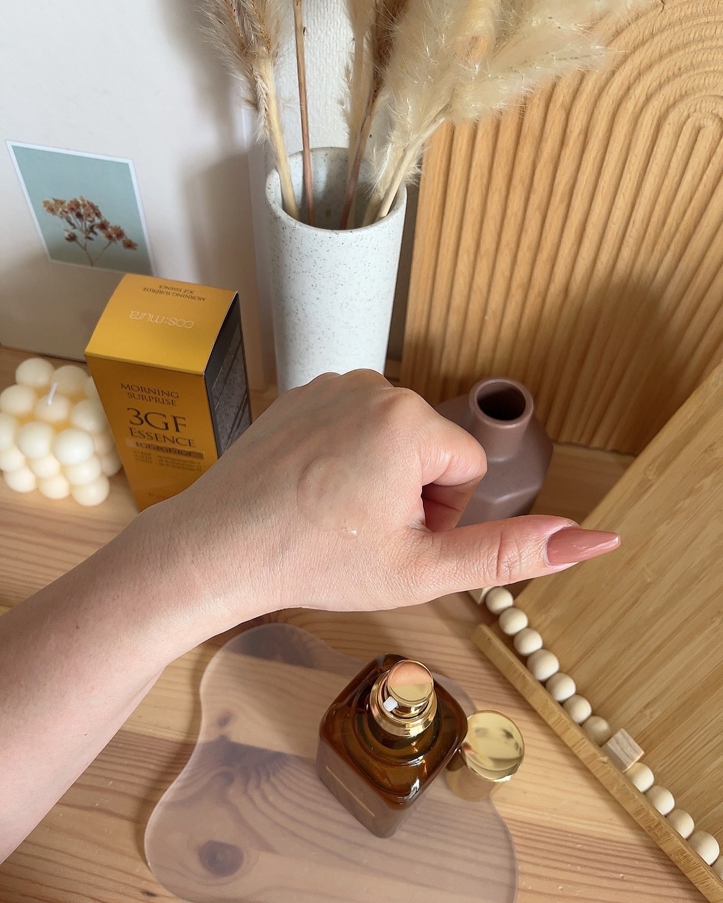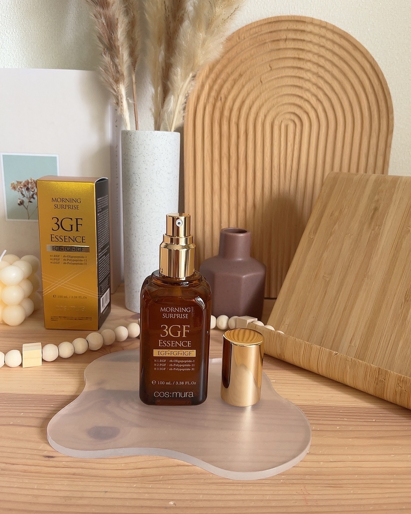 コスムラの3GFエッセンスを使ってみました🕊️ 年齢を重ねた肌のケアに嬉しい。ラクトバチルス発酵、ビフィズス発酵、ラクトコッカス発酵という3種の乳酸菌が配合された美容液。 とろーり濃厚なテクスチャーと高級感のある香り。肌のターンオーバーを活性化して肌コンディションをサポートしてくれる。 水溶性美容液だから脂溶性の美容液であるレチノールとの相性も抜群! ビタミンCとの併用もできます。