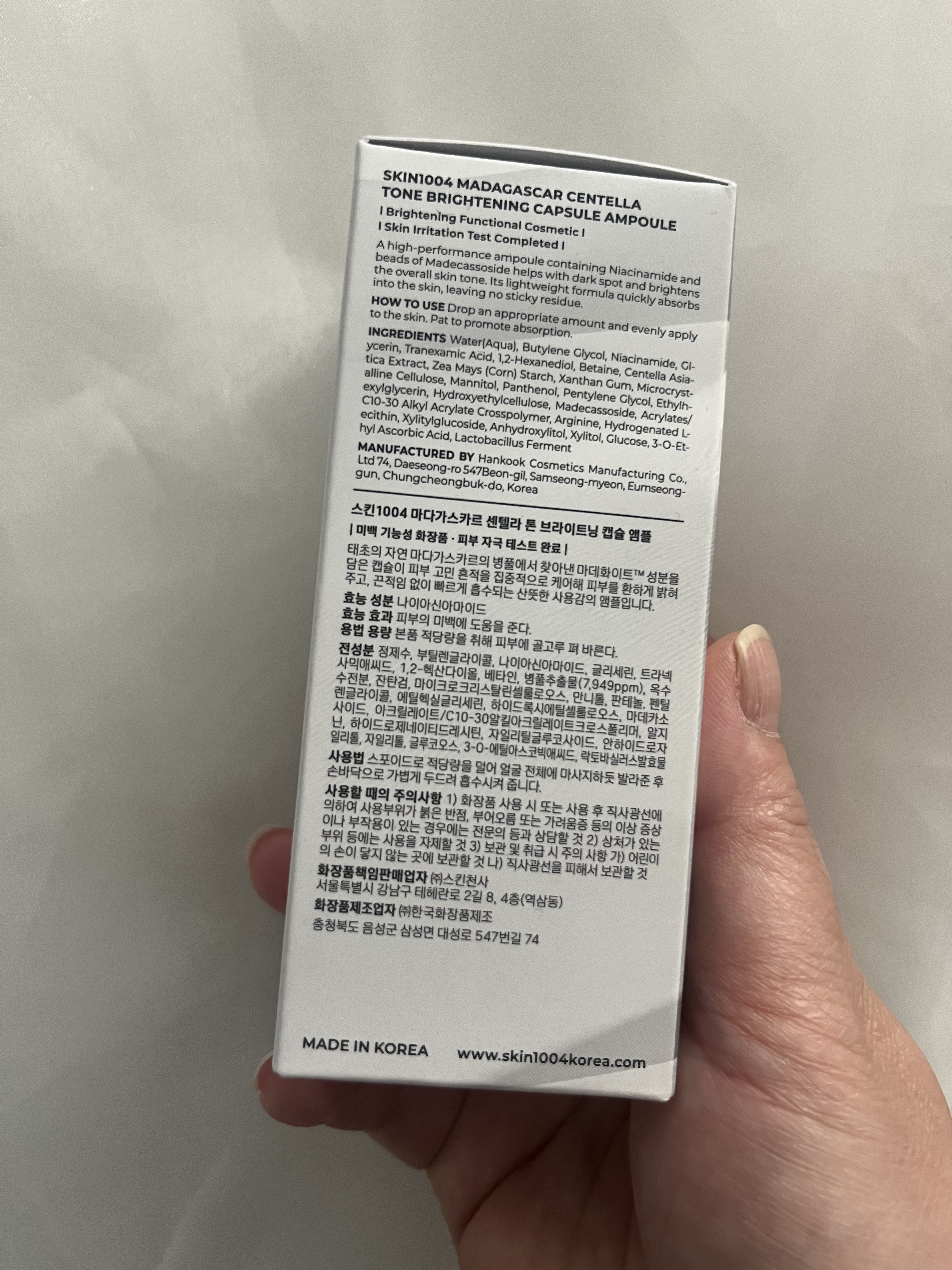 外部環境により刺激を受けた肌を素早く鎮静させ肌本来の美しさへ! カプセルに閉じ込められたSKIN1004こだわりのMADE WHITEが肌をやさしく引き締めながら美しいツヤ肌を叶えます!! 弱酸性PHで、肌のバランスを整え健やかな肌へ♡♡ マダガスカル産CICA成分をふんだんに配合 使用した瞬間お肌の潤いを感じました! ツヤ肌へどんどん近付きます♡