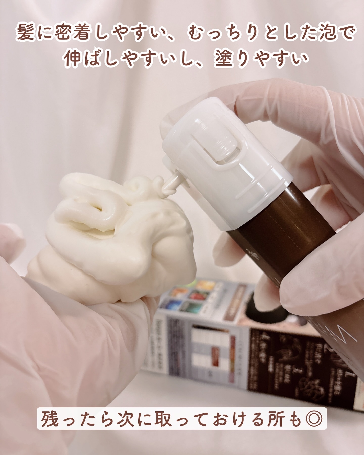 - 【医薬部外品】 24年9月に新色3色発売!人気の明るい色番とアッシュを追加し、全10色のカラーバリエーションに。 クリームの染まりと泡の塗りやすさを合わせた「手で塗れるもっちり泡クリーム」だから、生え際も見えない後ろも美しく仕上がる、こだわりの白髪染め。もっちりなめらかな泡クリームが、白髪の気になる生え際からしっかり密着。なのに手でするりと伸びるから後ろまでムラになりにくく簡単に塗れる。隙のない染まりで後ろまで美しく。