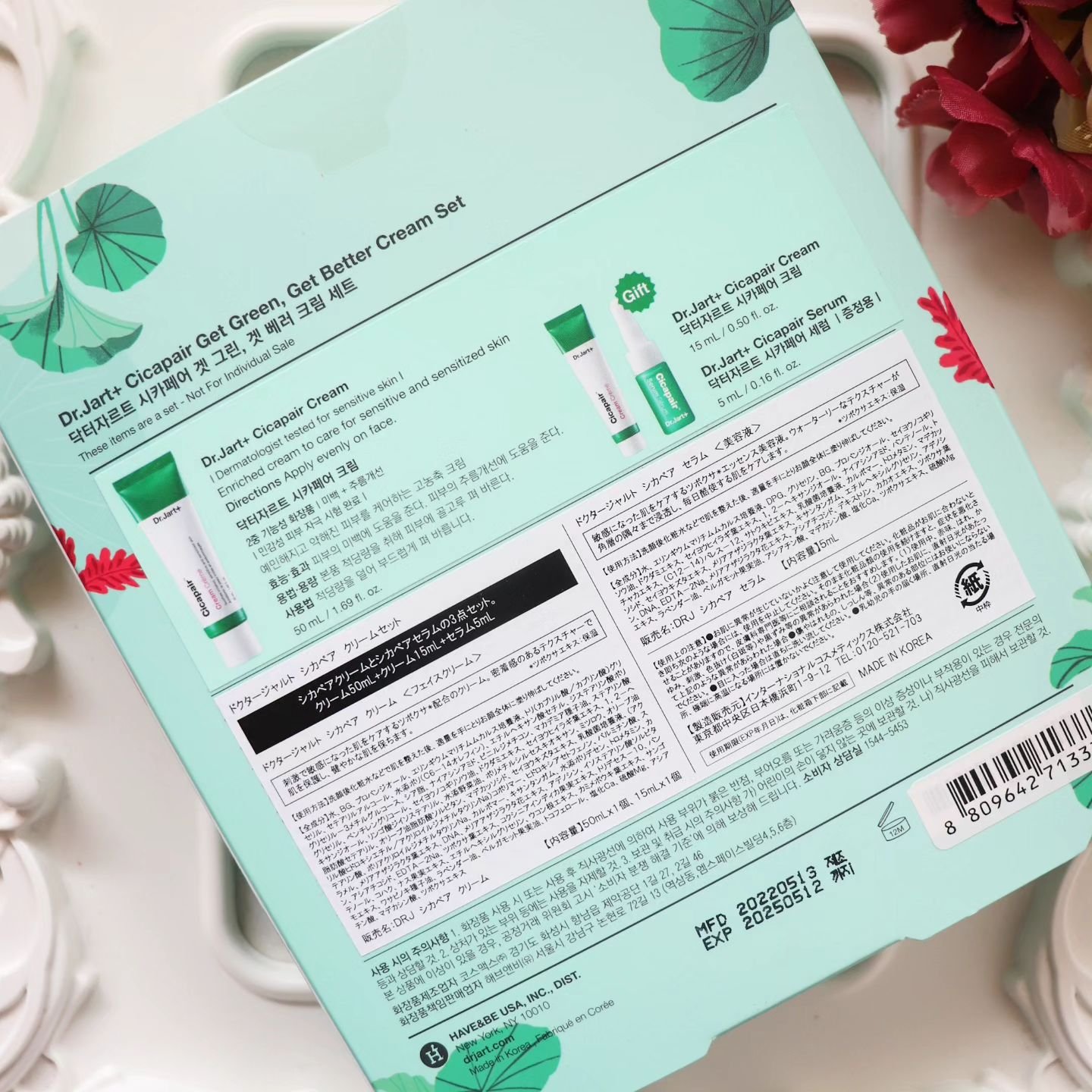 - ●ドクタージャルト シカペア クリーム:水、BG、プロパンジオール、エリンギウムマリチムムカルス培養液、トリ(カプリル酸/カプリン酸)グリセリル、セテアリルアルコール、水添ポリ(C6-14オレフィン)、エチルヘキサン酸セチル、ジステアリン酸ポリグリセリル-3メチルグルコース、シア脂、ナイアシンアミド、ビニルジメチコン、マカデミア種子油、ステアリン酸グリセリル、ペンチレングリコール、セイヨウノコギリソウ油、ドクダミエキス、セイヨウヒイラギ葉エキス、1,2-ヘキサンジオール、リンゴ酸ジイソステアリル、水添野菜油、ポリメチルシルセスキオキサン、ミツロウ、オリーブ油脂肪酸セテアリル、オリーブ油脂肪酸ソルビタン、マデカッソシド、セイヨウキズタエキス、乳酸菌培養液、(アクリル酸ヒドロキシエチル/アクリロイルジメチルタウリンNa)コポリマー、ヒドロキシアセトフェノン、パルミチン酸、ステアリン酸、ポリアクリロイルジメチルタウリンNa、カルボマー、キサンタンガム、水添ポリデセン、トロメタミン、カラメル、メリアアザジラクタ葉エキス、DNA、メリアアザジラクタ花エキス、アデノシン、イソステアリン酸ソルビタン、アシアチコシド、EDTA-2Na、ツボクサ葉エキス、コクシニアインディカ果実エキス、トリデセス-10、パンテノール、コハク、ナス果実エキス、エチルヘキシルグリセリン、ウコン根エキス、カミメボウキ葉エキス、サンゴモエキス、ワサビノキ種子油、ラベンダー油、ベルガモット果実油、トコフェロール、塩化Ca、硫酸Mg、アシアチン酸、マデカシン酸、ツボクサエキス ●ドクタージャルト シカペア セラム:水、エリンギウムマリチムムカルス培養液、DPG、グリセリン、BG、プロパンジオール、セイヨウノコギリソウ油、ドクダミエキス、セイヨウヒイラギ葉エキス、1,2-ヘキサンジオール、ナイアシンアミド、パンテノール、トチャカエキス、(C12-14)パレス-12、サトウキビエキス、乳酸菌培養液、カルボマー、トロメタミン、マデカッソシド、セイヨウキズタエキス、メリアアザジラクタ葉エキス、キサンタンガム、エチルヘキシルグリセリン、アデノシン、DNA、EDTA-2Na、メリアアザジラクタ花エキス、アシアチコシド、デキストリン、カカオエキス、ツボクサ葉エキス、ラベンダー油、ベルガモット果実油、アシアチン酸、マデカシン酸、塩化Ca、ツボクサエキス、硫酸Mg