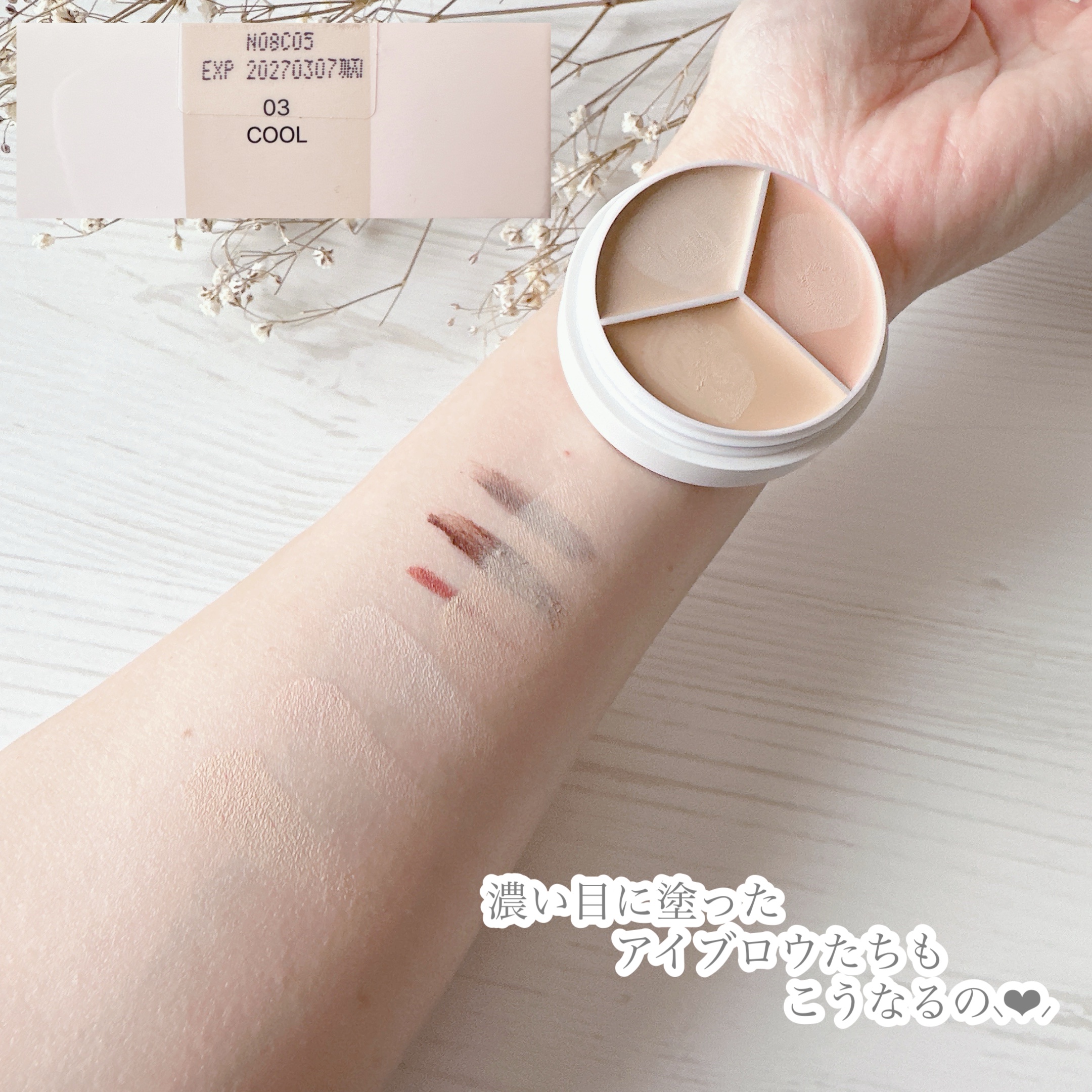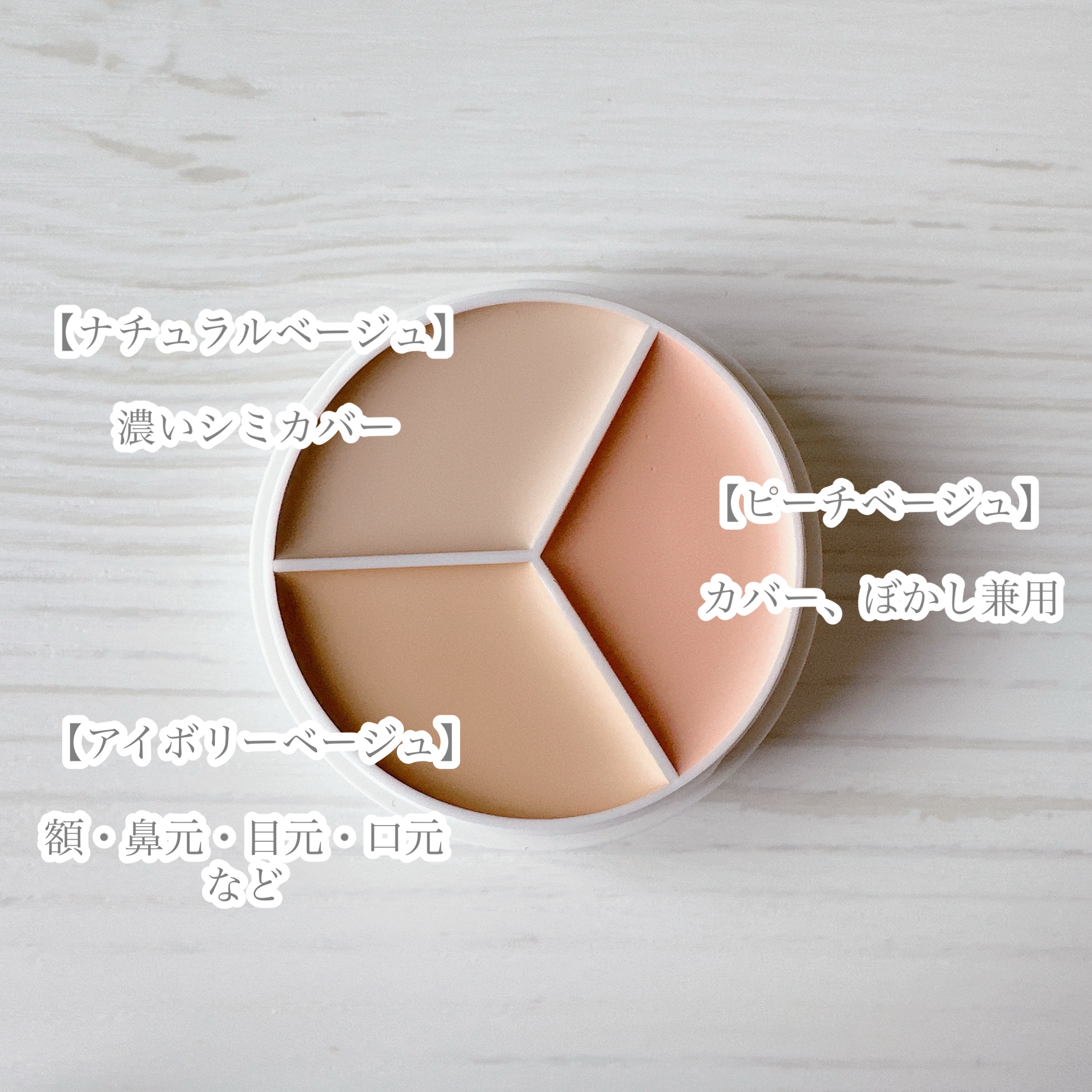 - クマからニキビ跡、シミまでこれ1つでカバー。 3色タイプだからこそ、気になるところや肌色を選ばずにご使用いただけます。 リキッドタイプを圧縮した高濃度バームのため高カバー高密着*¹を実現。 コンシーラーだけでなくコントアとしても使用可能です。 *1メーカー比
