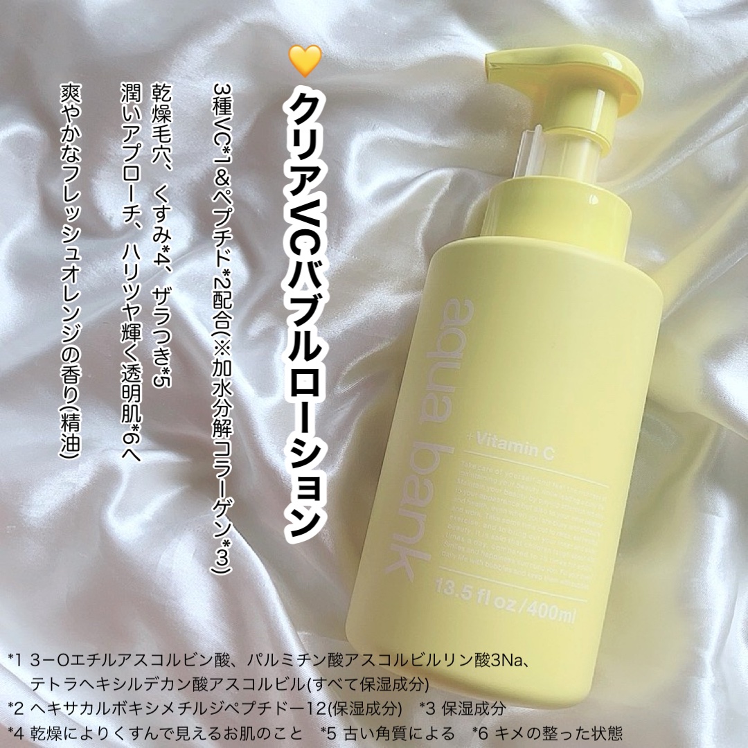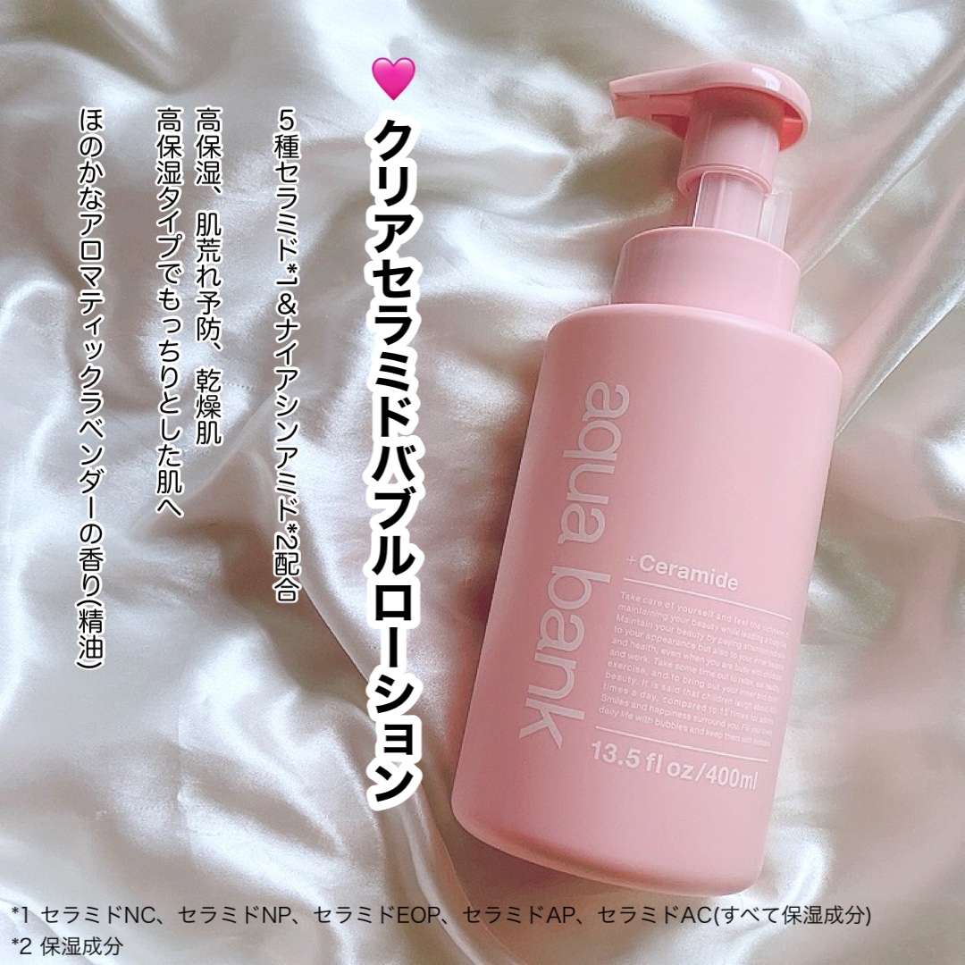 。.ꕤ‿aquabankクリアバブルローションセラミド‿ꕤ.。LDKで評価高かったので購入!セラミドとビタミンCの2種類どちらも購入しました!今回はセラミドのクチコミです。泡で出る化粧水って珍しいですよね😮泡化粧水のメリット①浸透率が高い:接...