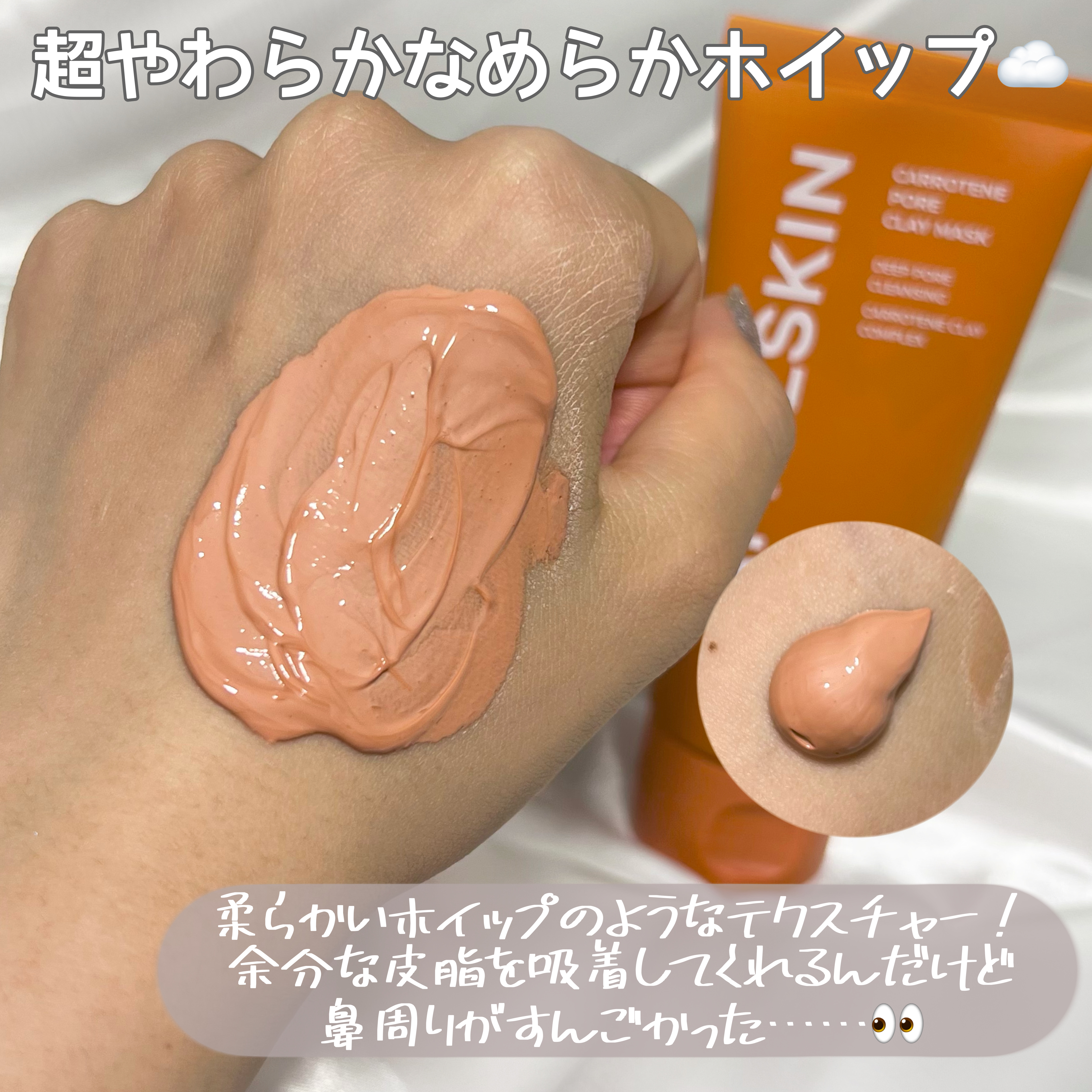 ホイップのようなテクスチャーが肌に密着して毛穴のお掃除🧹 素早く乾燥して洗い上がりスッキリでざらつきが軽減し、なめらかつるんと肌な仕上がりに✨️ 洗い流したあともいい香りがする🤍 敏感肌の方や慣れてない方は、部分使いからしてみるのもいいかも🙆♀️