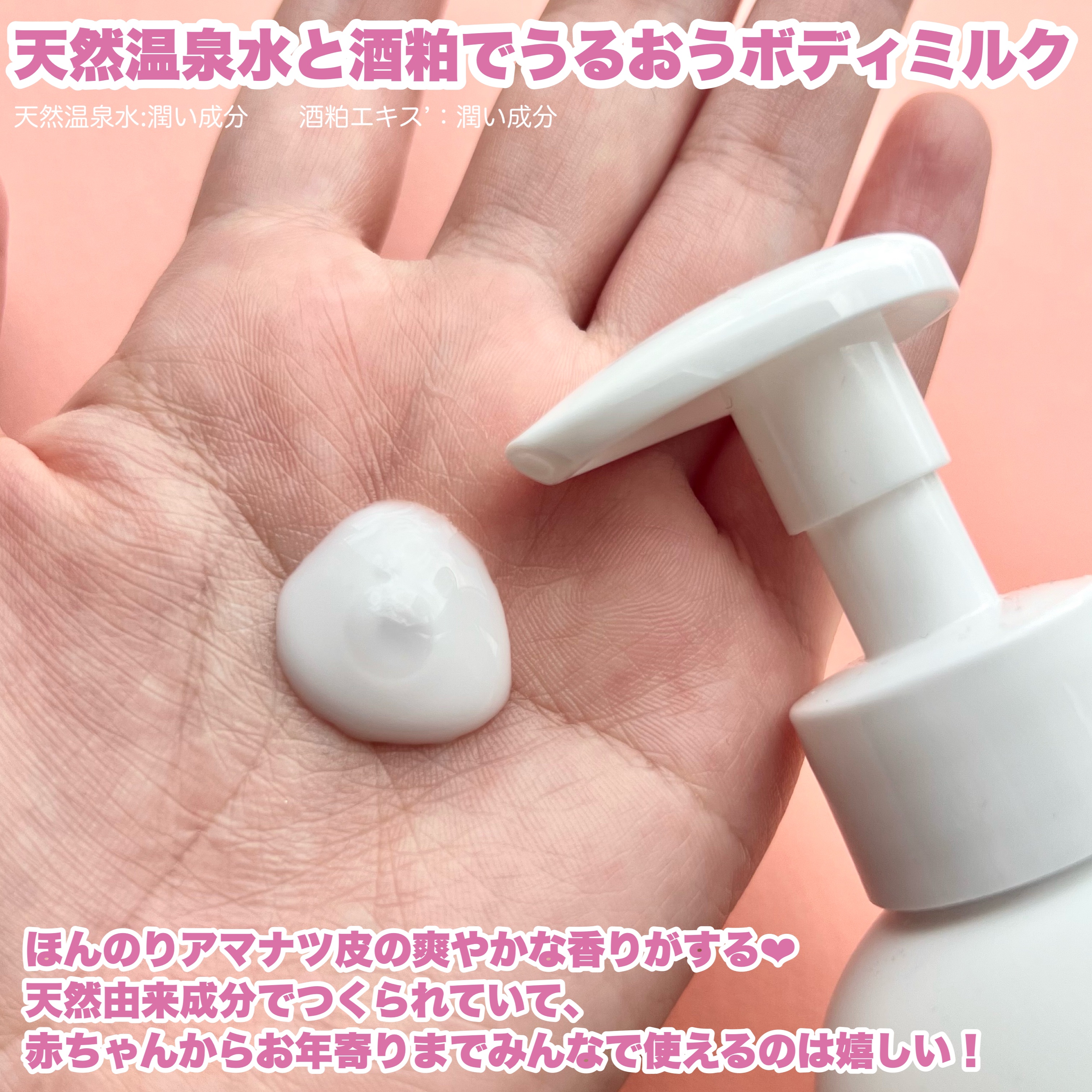 - 糸島の天然温泉水が肌のすみずみまでベタつかず浸透し、しっとりとした潤いを長時間キープする天然成分100%のボディミルク。 福岡糸島「白糸酒造」のアップサイクルした酒粕の酒粕エキス、福岡糸島「わかまつ農園」で有機栽培された甘夏をアップサイクルした甘夏精油を配合。 パラベン・アルコール・鉱物油・石油系界面活性剤・シリコン・合成香料・合成着色料・マイクロプラスチックビーズ・動物由来成分不使用。クルエルティーフリー。「COSMOS NATURAL認証」取得。