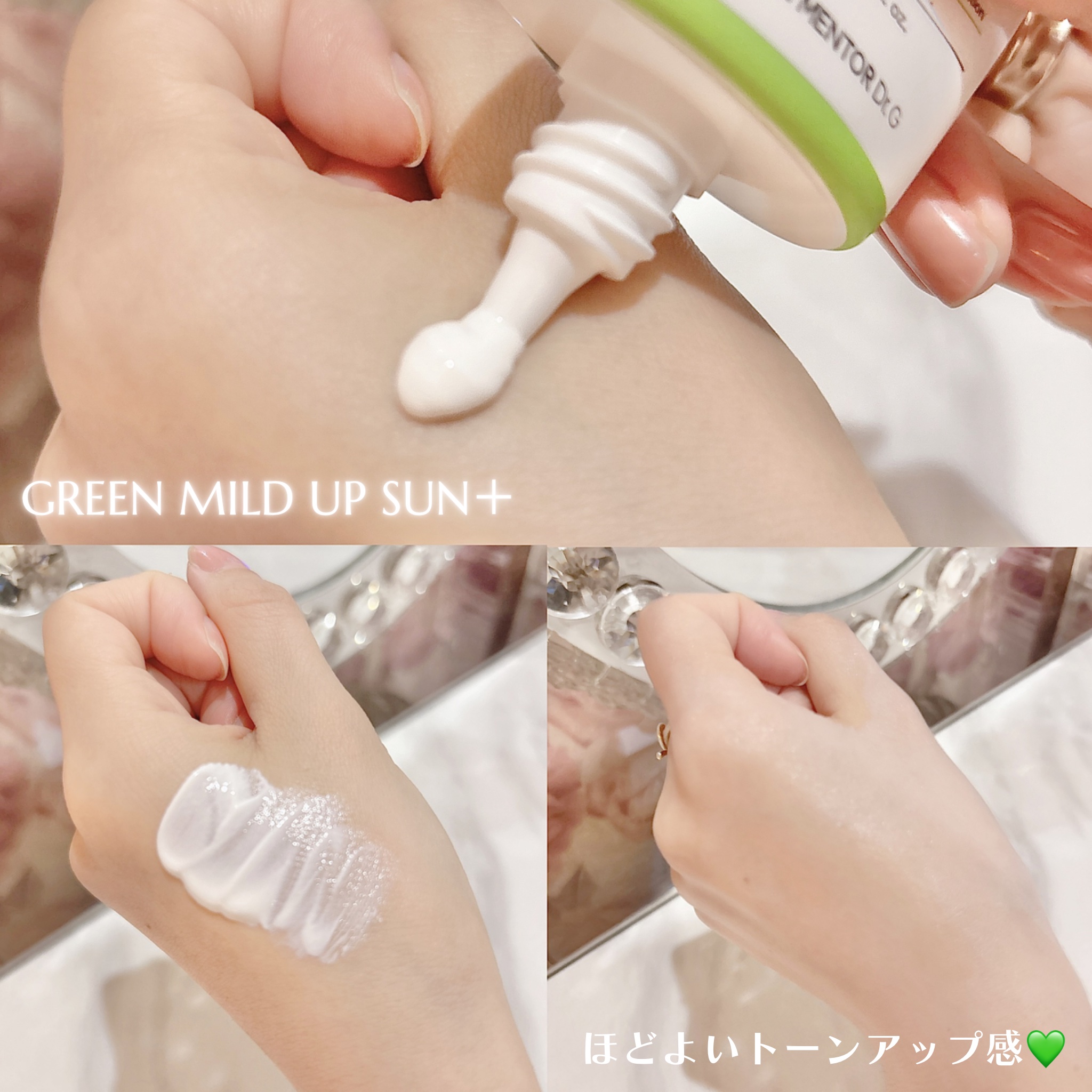 特に、グリーンマイルドサンアッププラスはオリーブヤング🫒で【 5年連続 】日焼け止め部門を受賞した大人気商品🏅✨️ 無機系(紫外線散乱剤)で、光を跳ね返し肌に吸収しないようにしてくれる❣️ テクスチャは割とこっくり系☁️ 肌なじみ悪い?!と思ったけどしっかり馴染んで白浮きナシでした🙆🏻♀️❣️